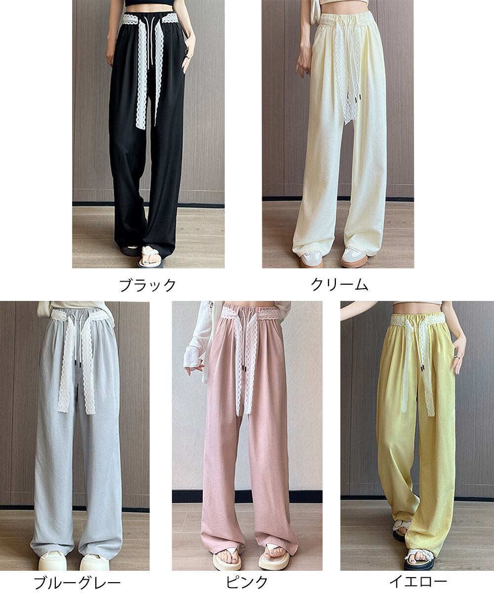 レースワイドイージーパンツ韓国風ボトムス
