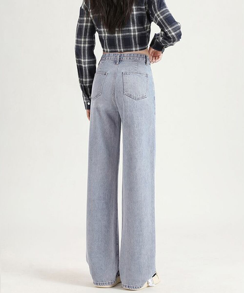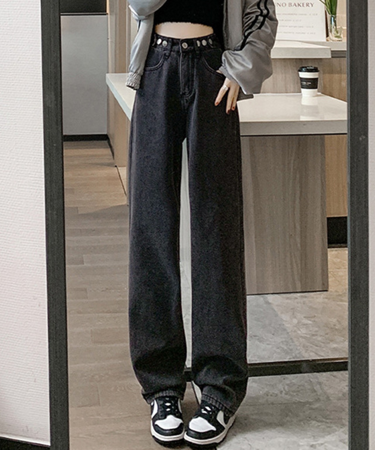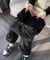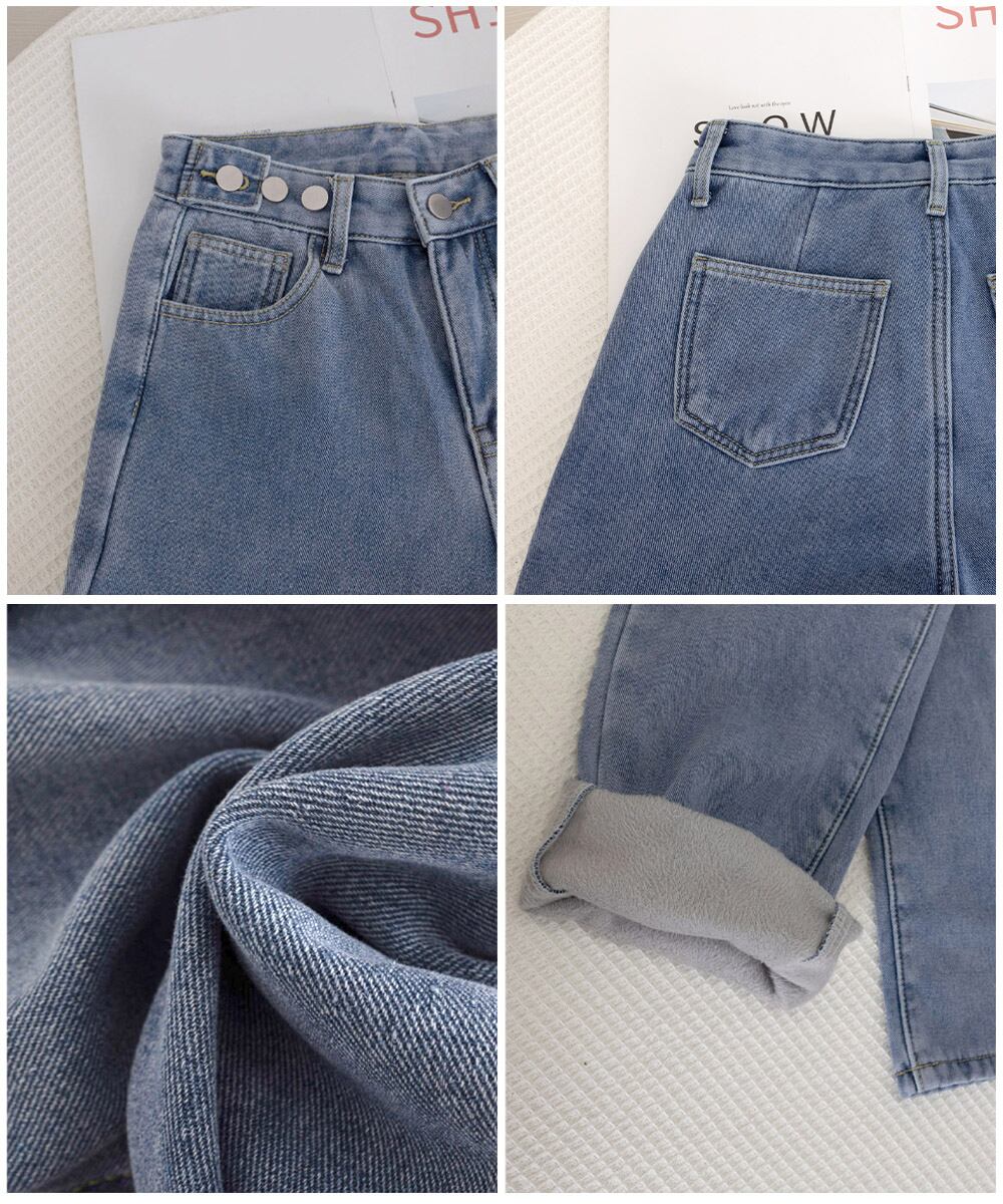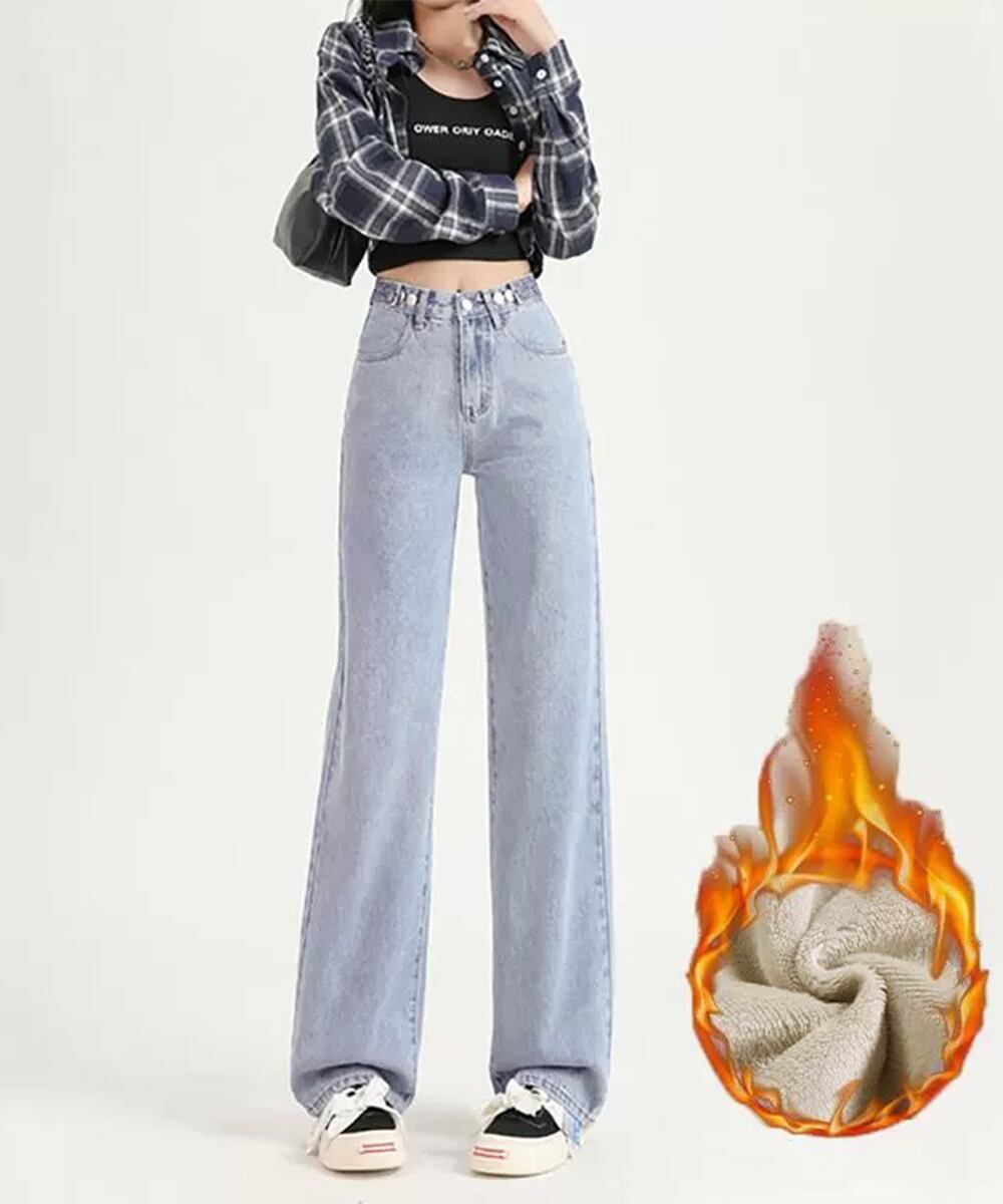美脚ストレートデニムレディース ハイウエスト裏ボアジーンズ ゆったりジーパン カジュアルあったかロングパンツ防寒 韓国風