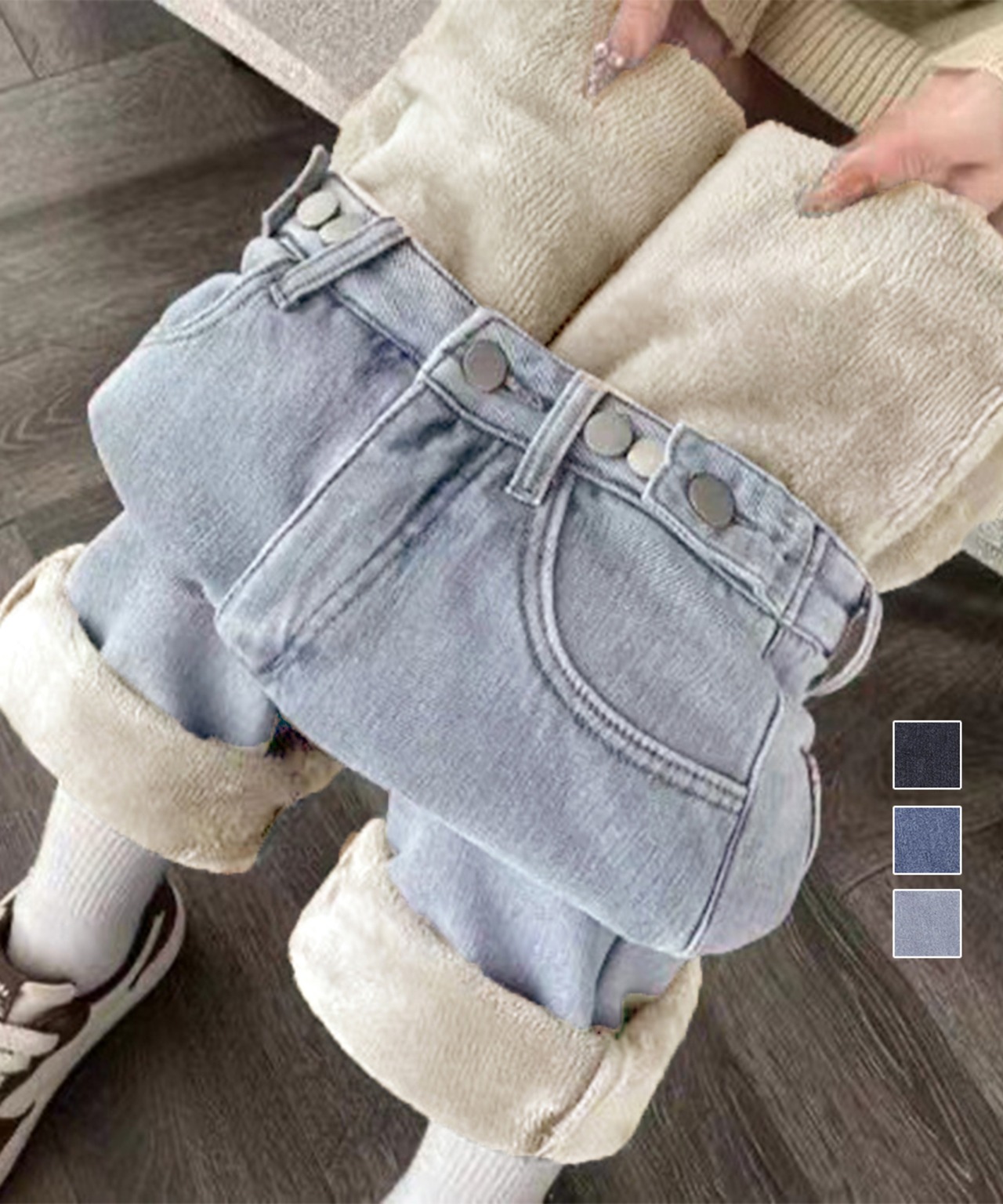 暖かく柔らかな裏起毛素材を使用した、冬にぴったりのデニムパンツ。