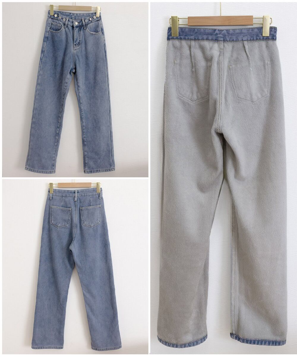 脚長ジーパン着やせ 体型カバーボトムス 裏フリースデニム冬