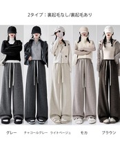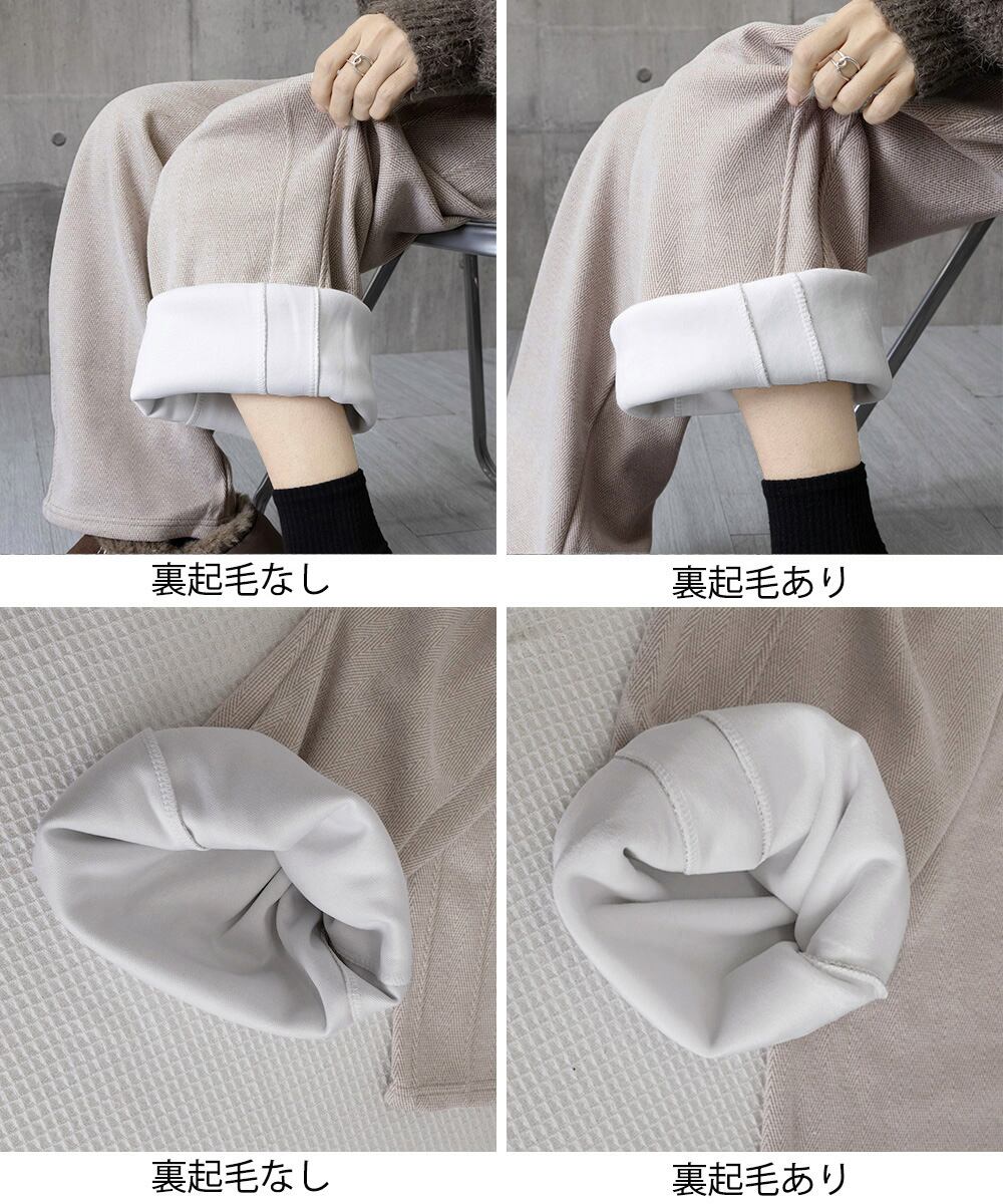 ハイウエストストレートパンツ 裏起毛ノーマル2タイプ ウエストゴムリラックスパンツ ポケット付き楽ちんイージーパンツ秋冬