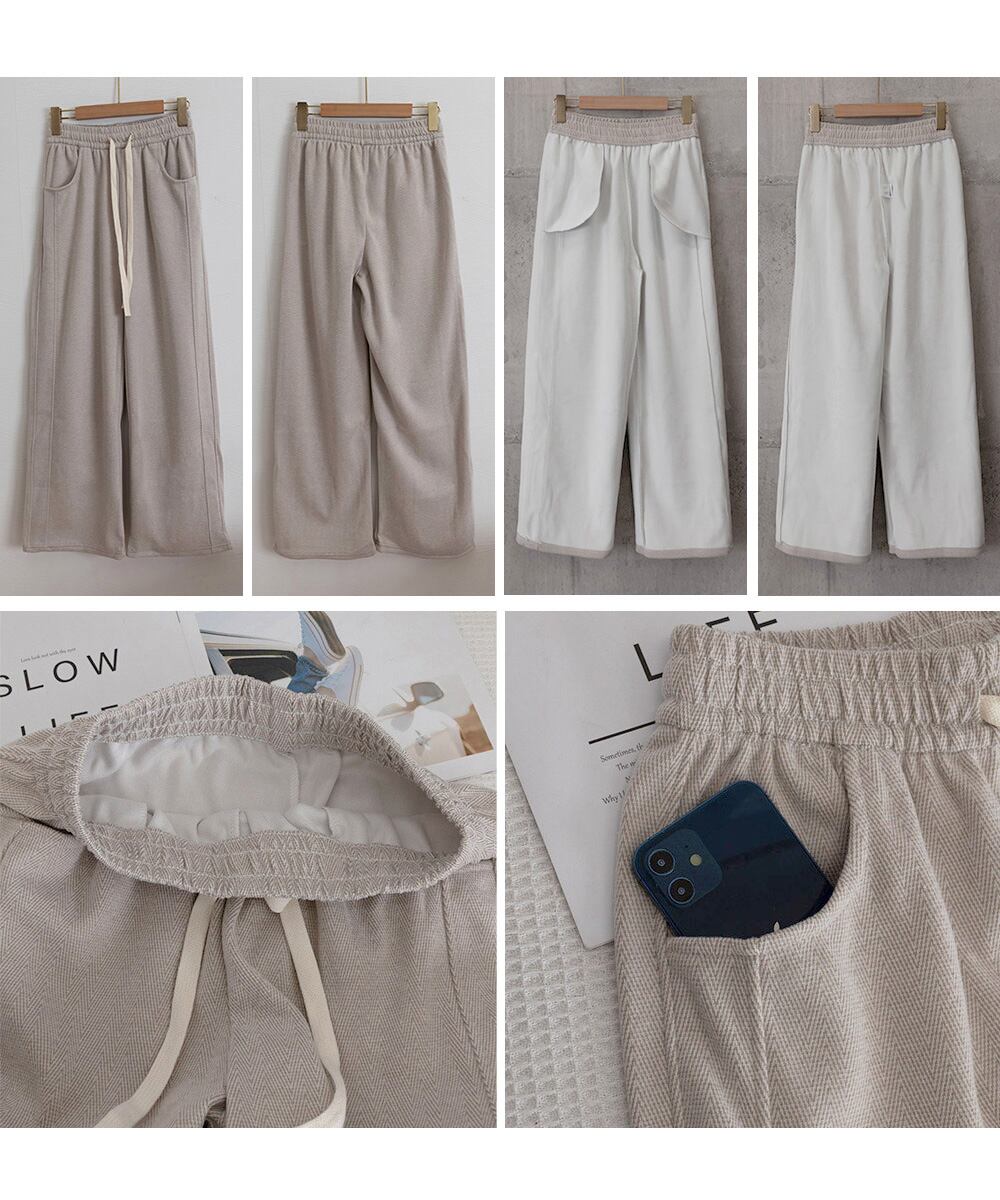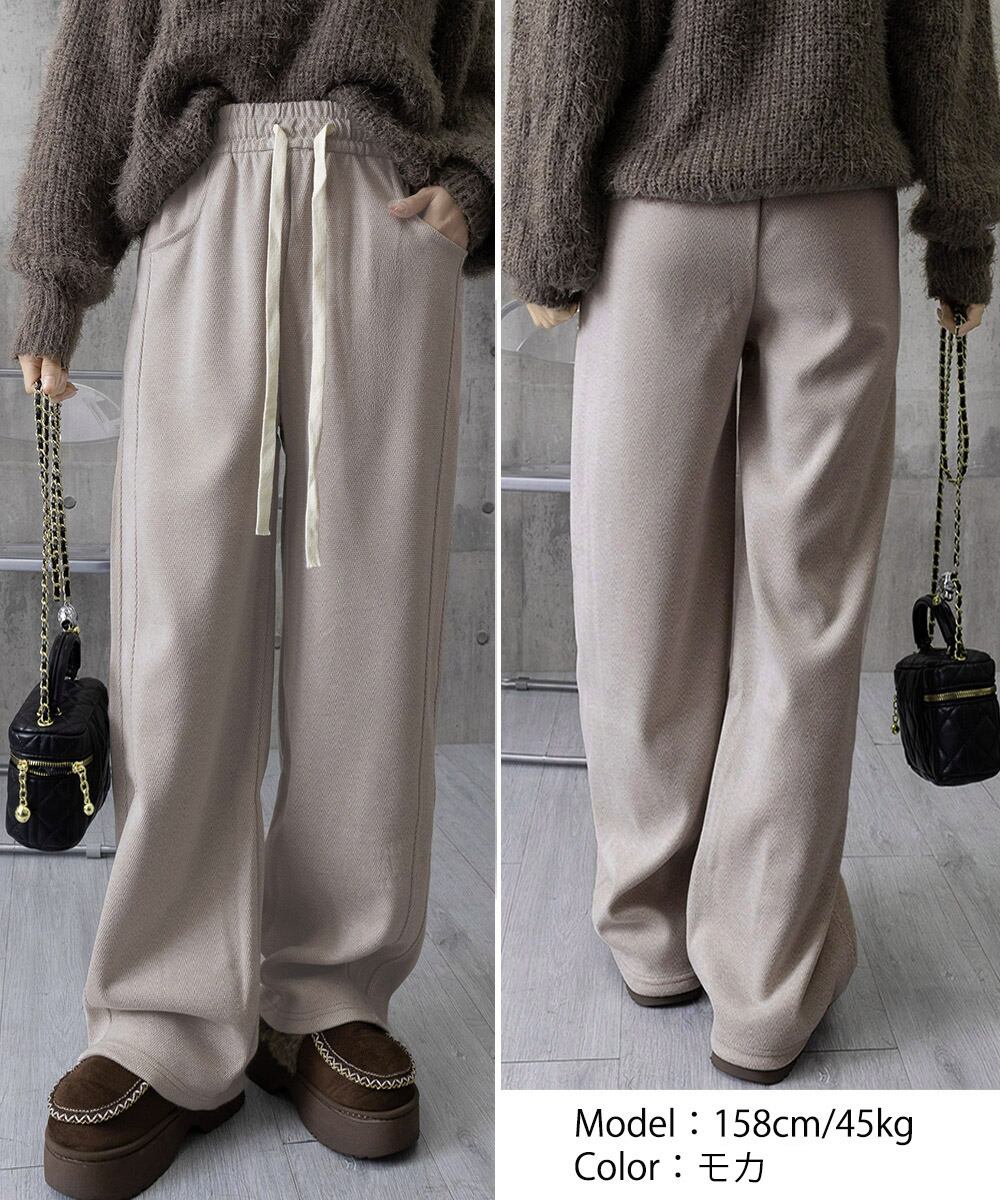 ヘリンボーン柄ワイドパンツレディース美脚