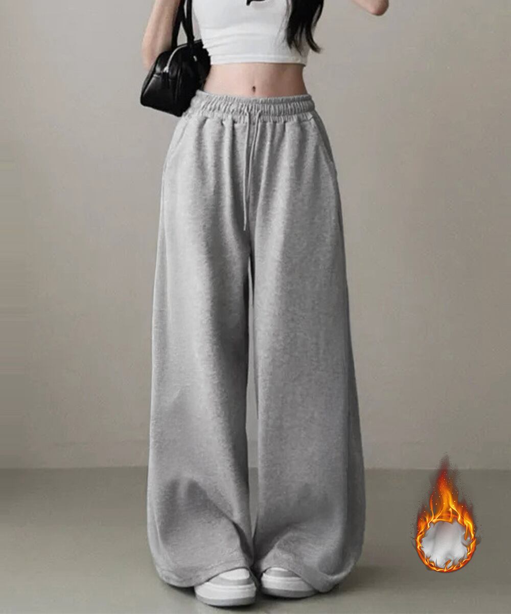 レディースワイドパンツ 裏起毛パンツ イージーパンツ 着やせボトムス ゆったり運動着 リラックスパンツ楽ちんロングパンツ