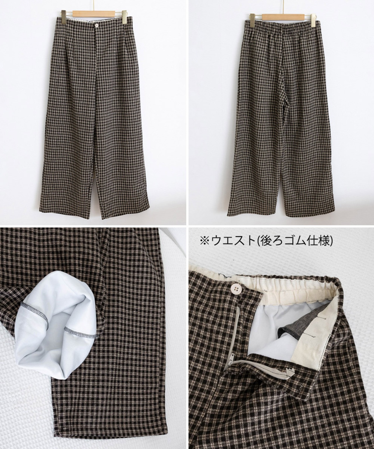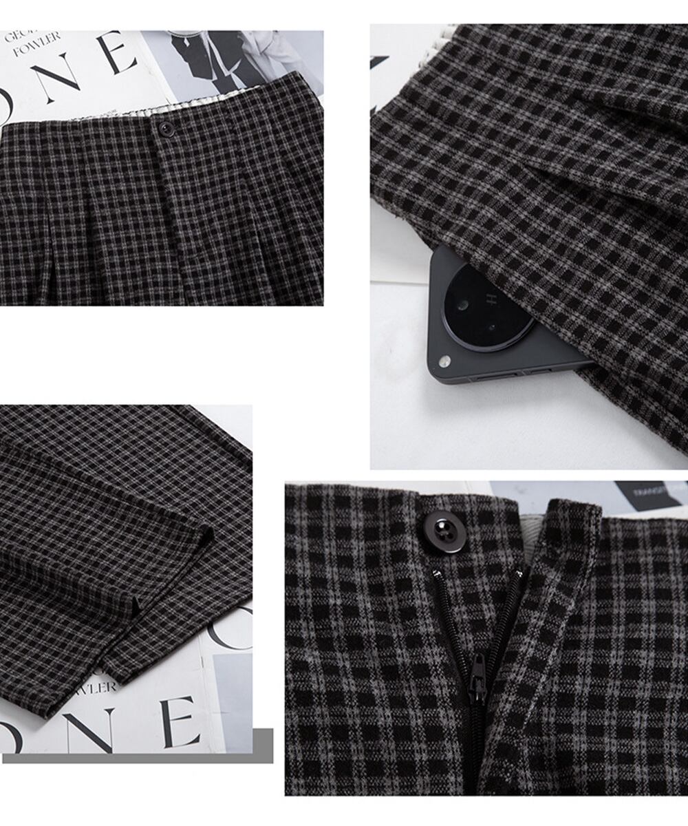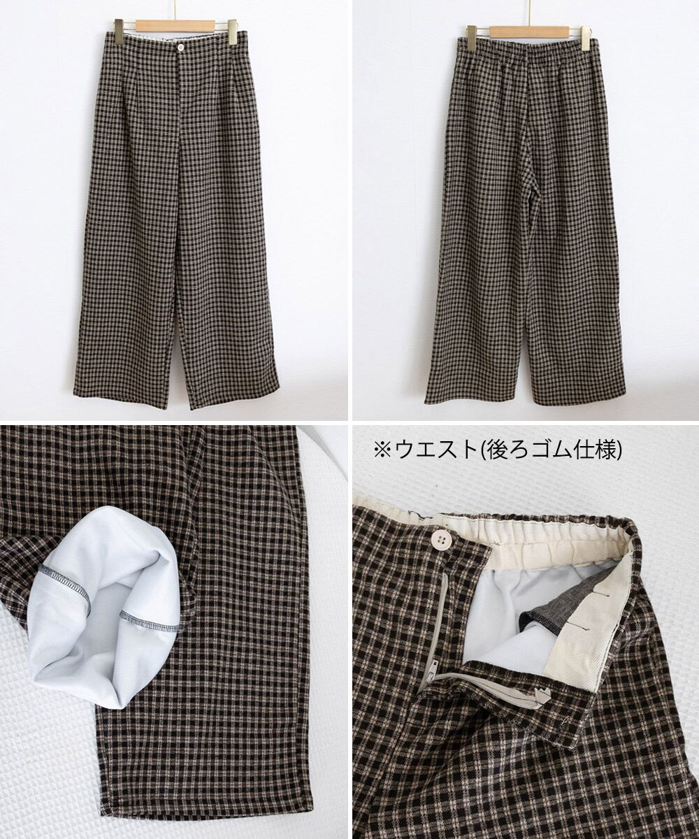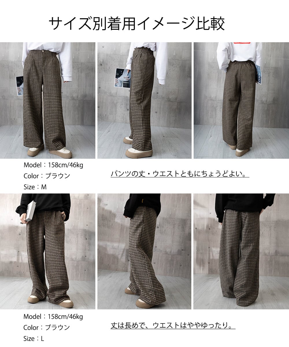チェック柄ワイドパンツハイウエスト 秋冬