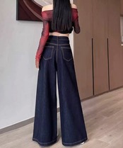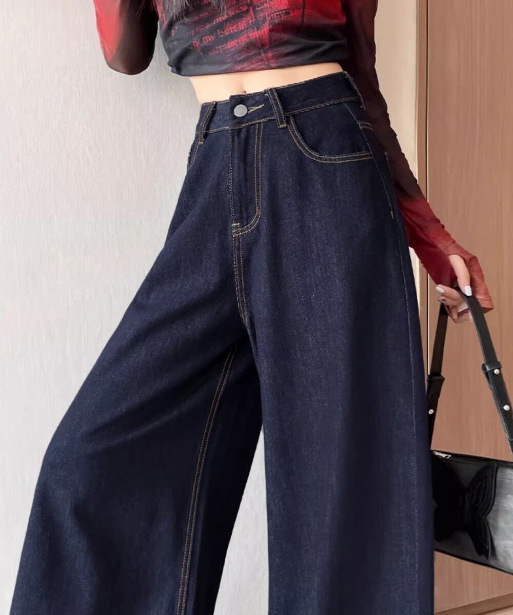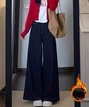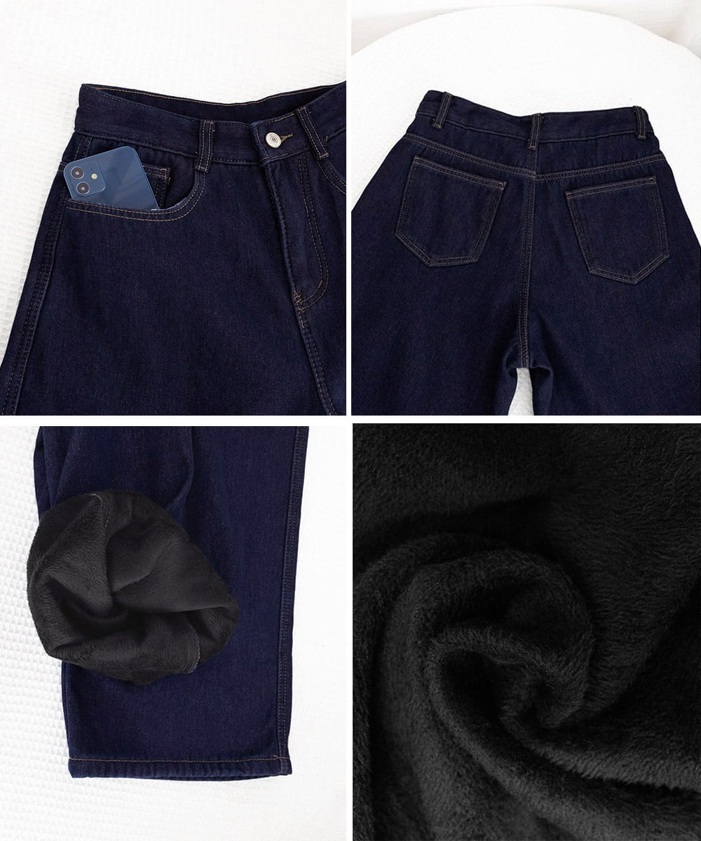 レトロ風カジュアル ストレートデニム 暖かいパンツ 体型カバー着やせ ロングパンツ 防寒ジーパン ハイウエスト ゆったり