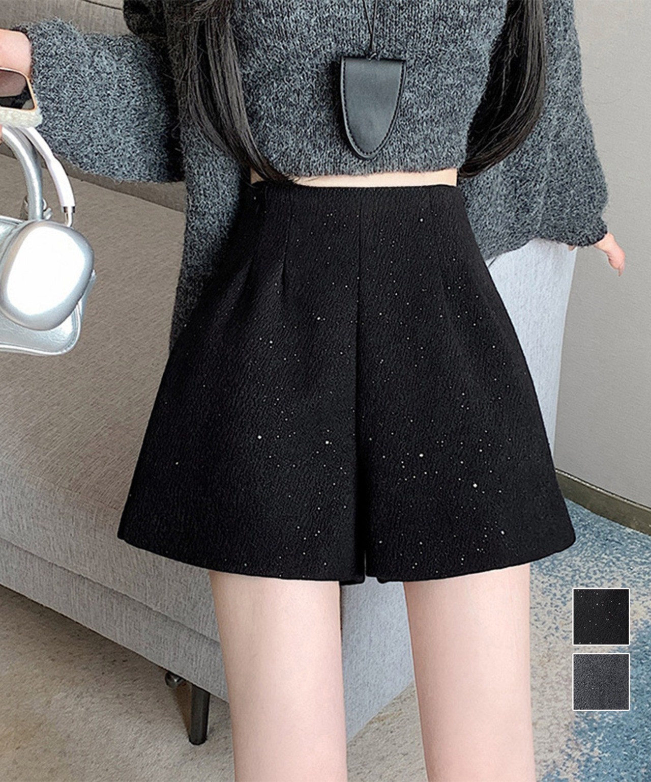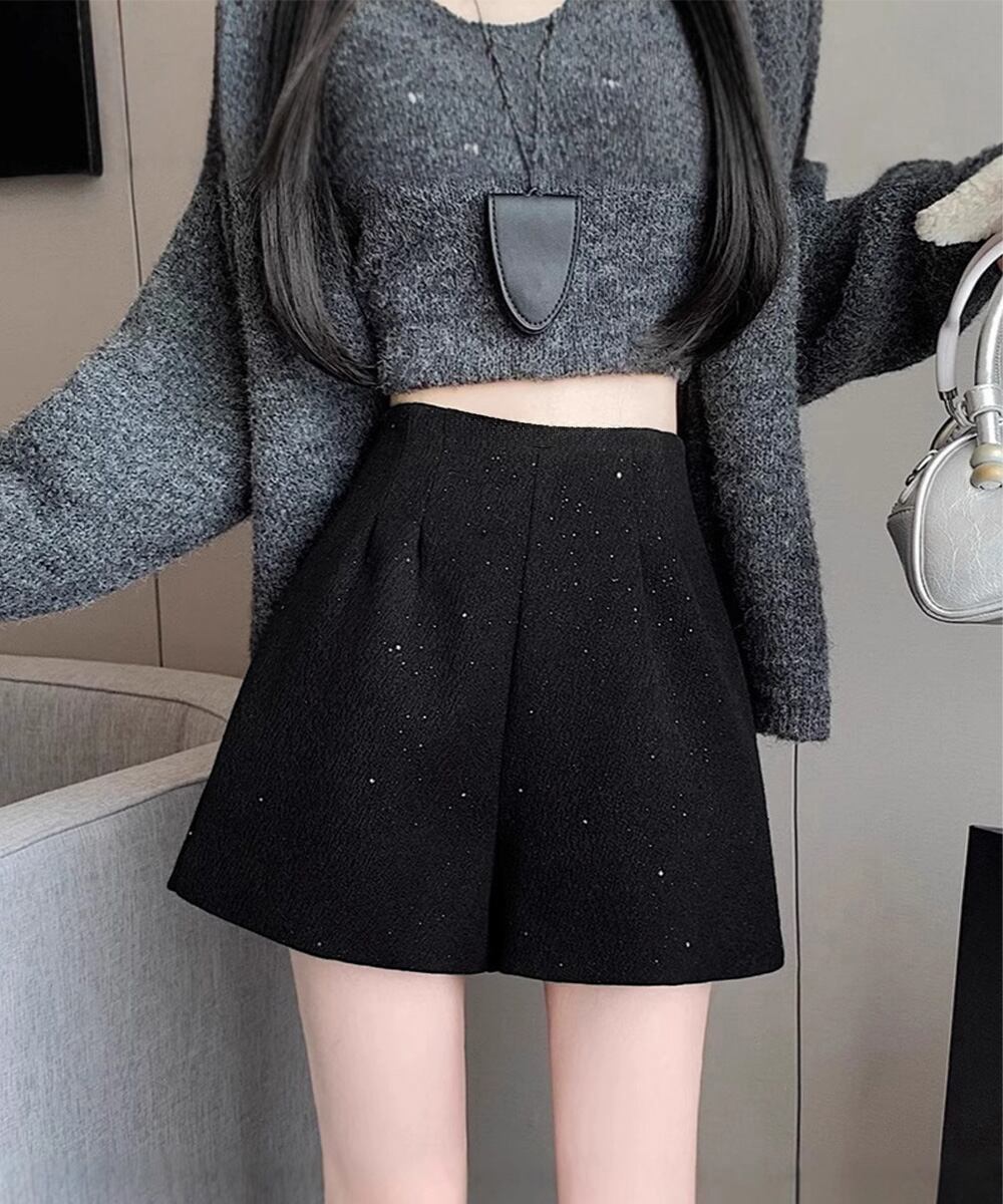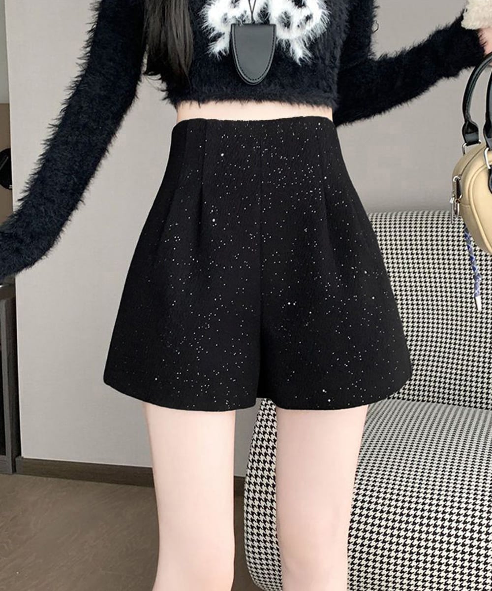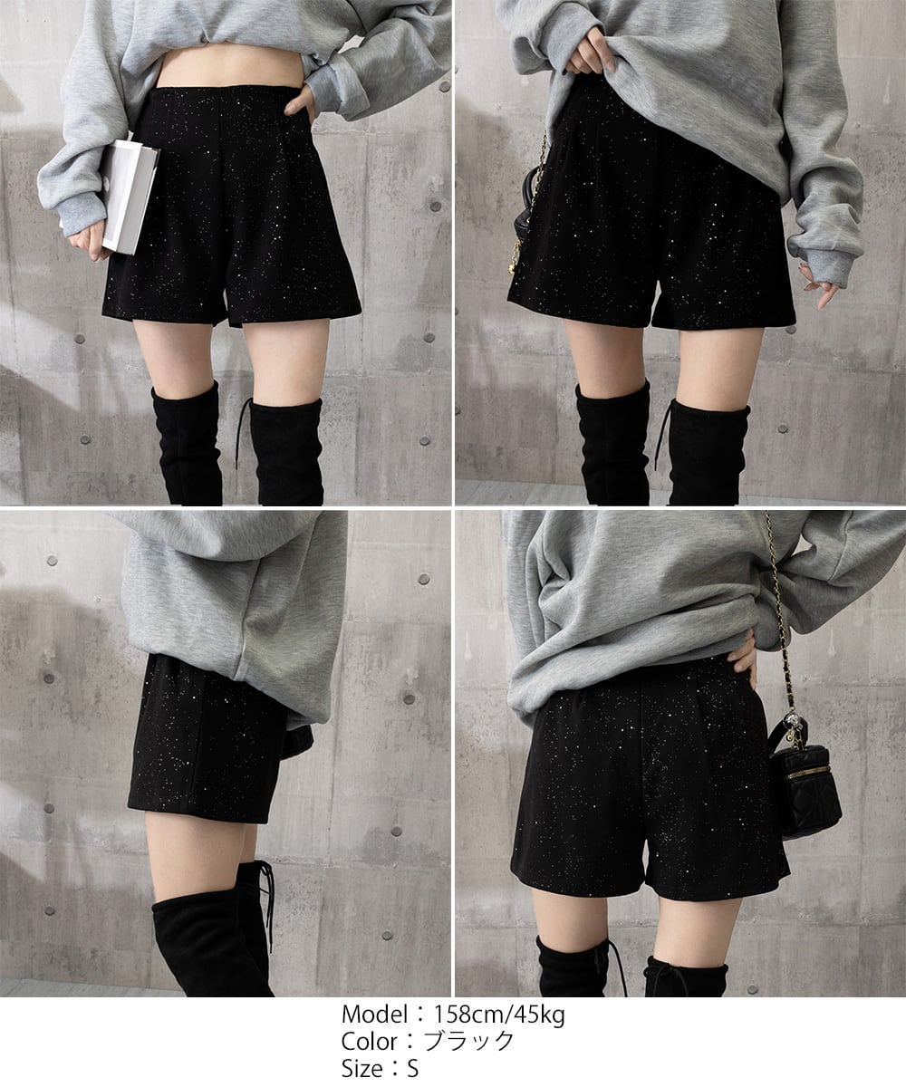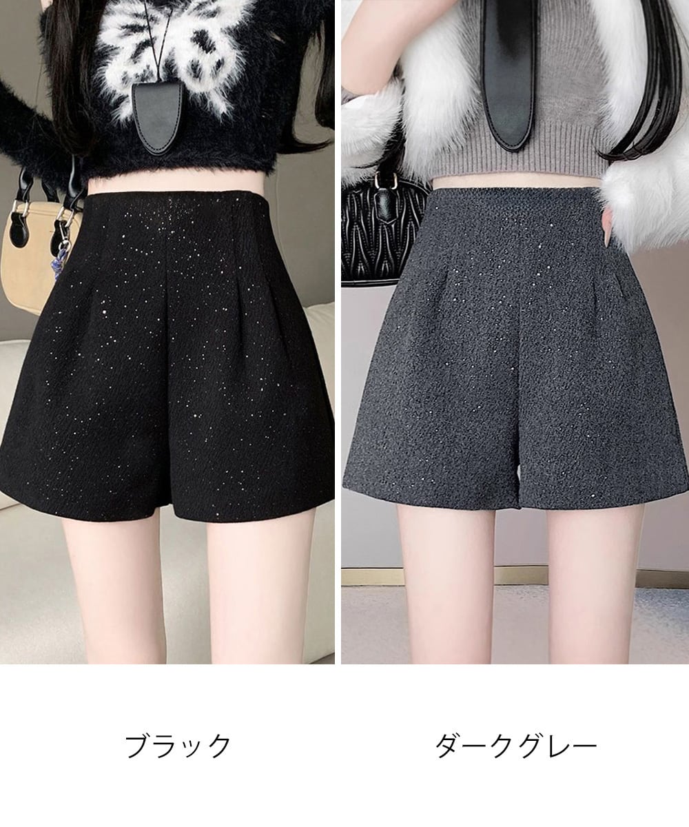 ラメツイード風ショートパンツハイウエスト