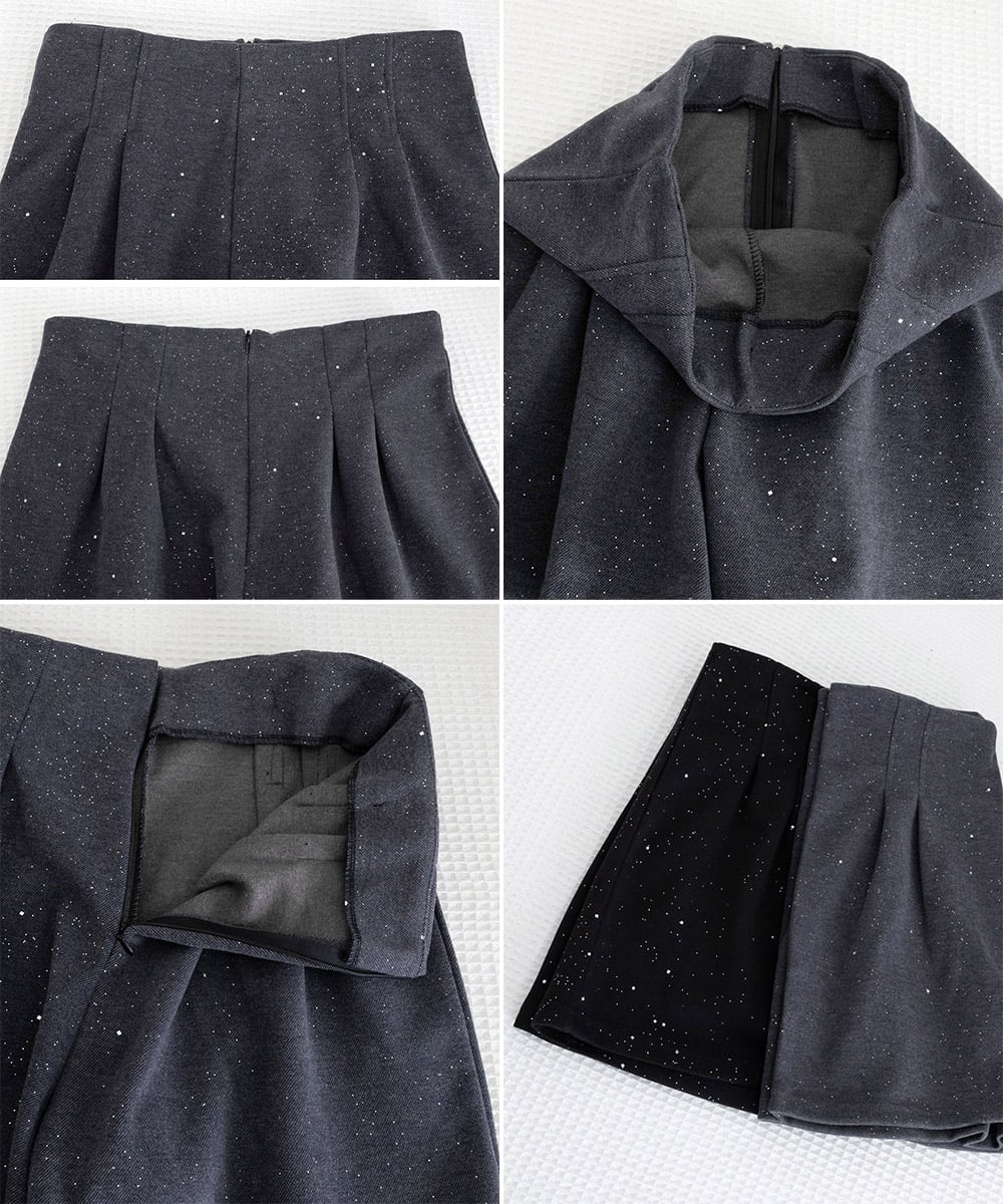 生地全体に散りばめられた細かなラメが、さりげなく光を反射し、上品なきらめきをプラス。