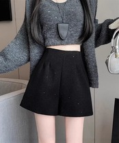 大人可愛いAラインショーパン キラキラ タック短パン 春秋冬 美脚脚長 ミニ丈パンツ膝上丈 ワイドショートパンツ 着やせ
