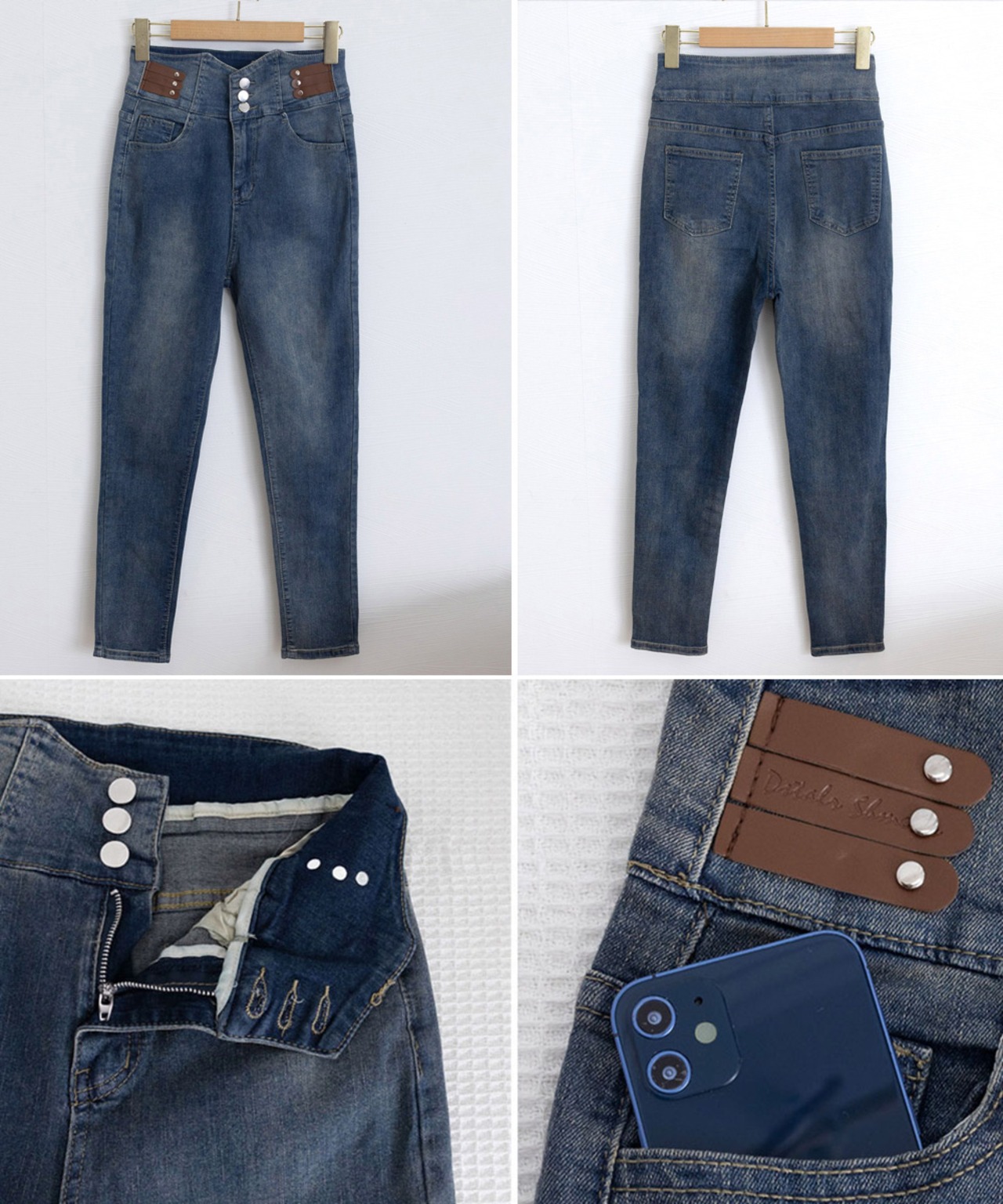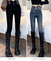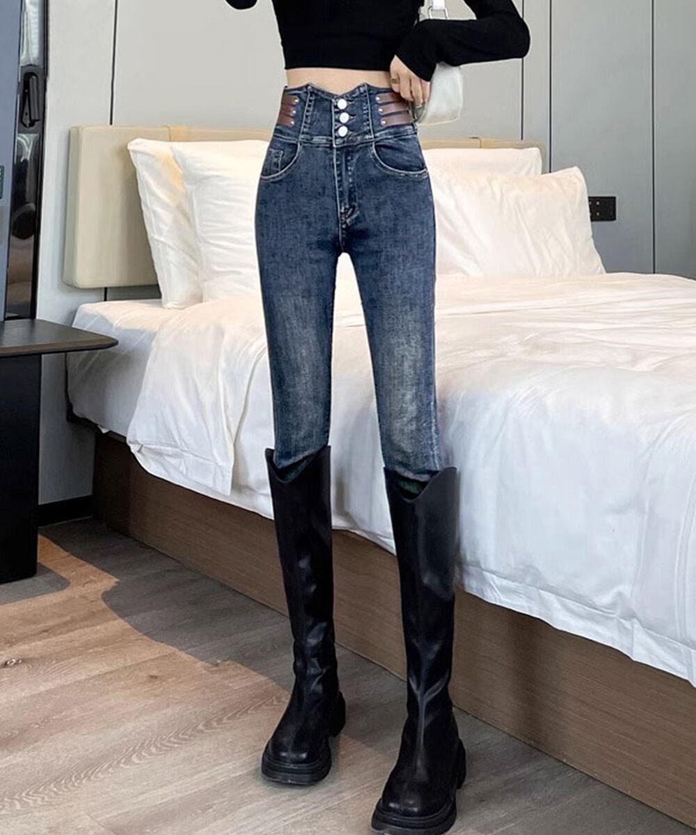 ハイウエストデニムパンツ 3ボタンジーンズ レディース ストレッチジーパン ヴィンテージ カジュアル美脚脚長ボトムスリム