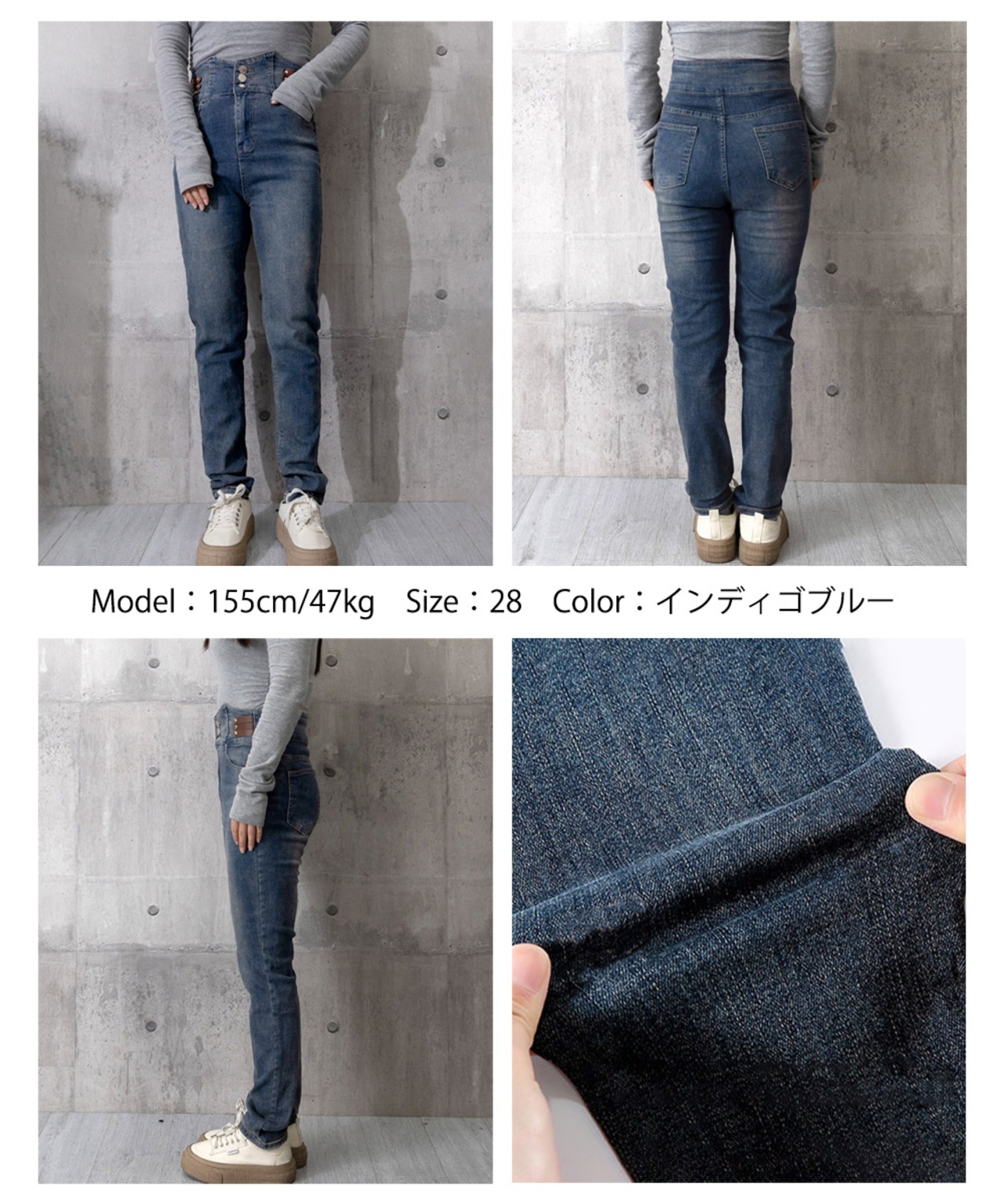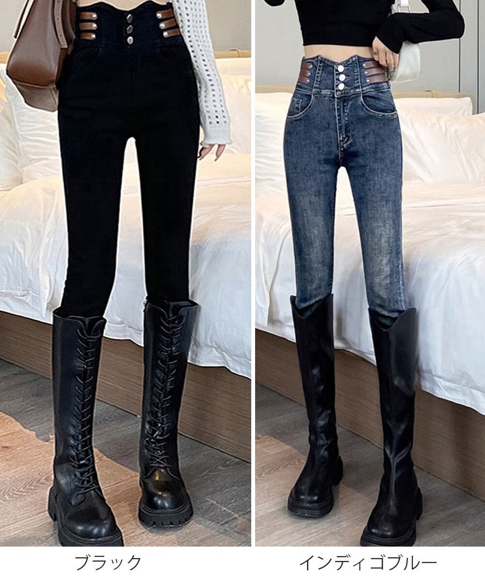 トレンド感抜群のハイウエストスキニーデニムパンツ。