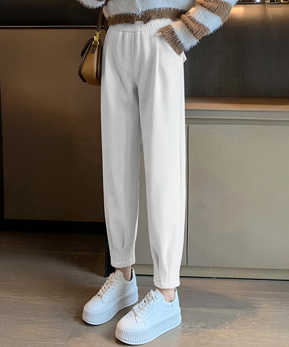 秋冬に活躍する、裏起毛仕様のレディースコーデュロイパンツ。