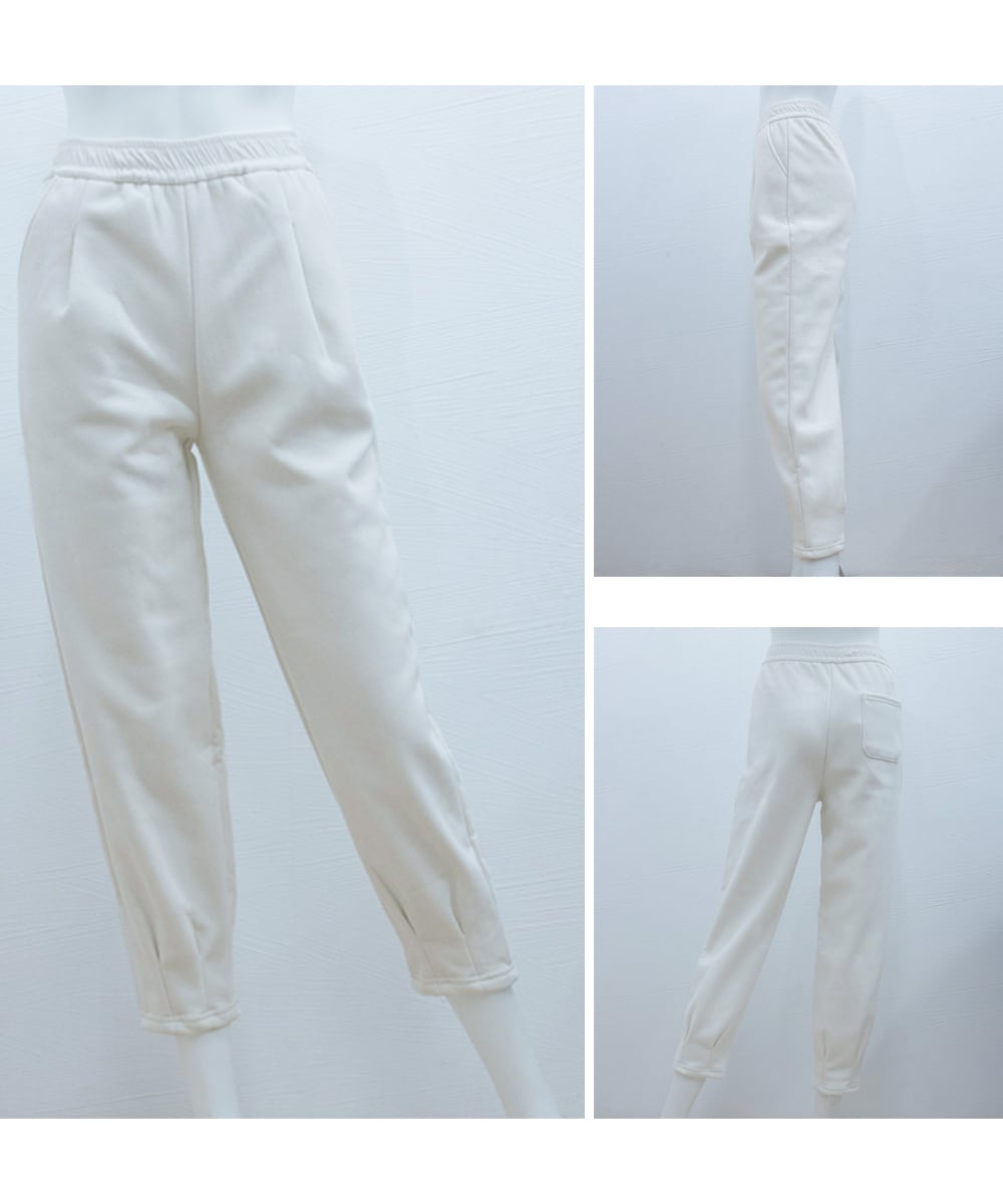 防寒裏フリースパンツレディース ウエストゴムパンツカジュアルきれいめ タック入りパンツあったか楽ちん アンクルパンツ秋冬