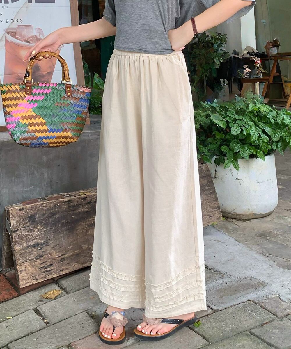 韓国ファッション 九分丈パンツ らくちんパンツ美脚
