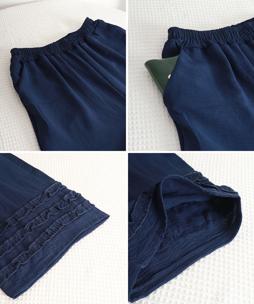 アンクル丈パンツ ゆったり 薄手 ギャザー ウエストゴム リラックス 着やせ オシャレ カジュアル きれいめ 大人可愛い
