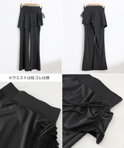 ハイウエストデザインで気になるお腹まわりをスマートにカバー。ウエストはゴム仕様のため、締め付け感がなくストレスフリーな穿き心地。