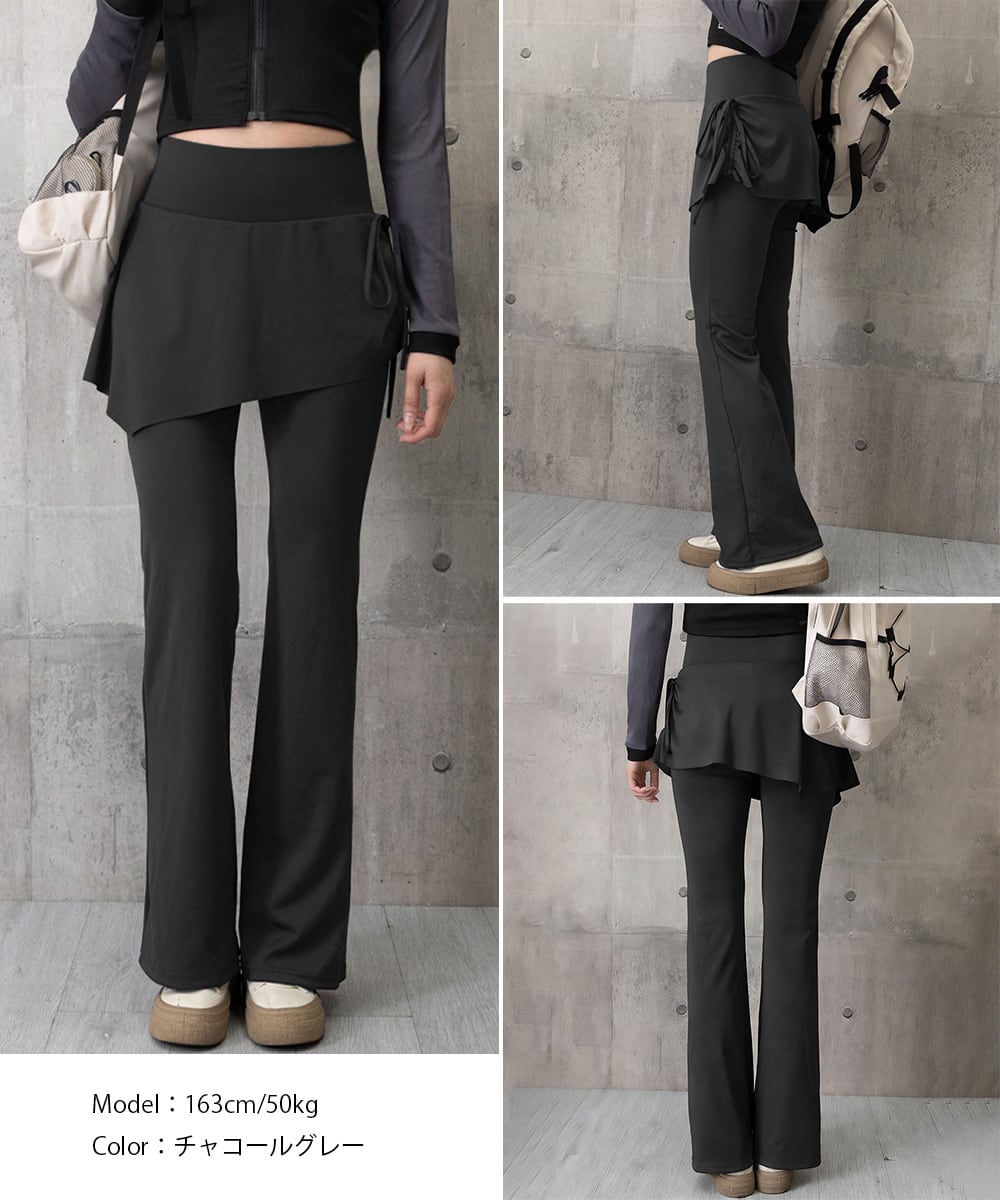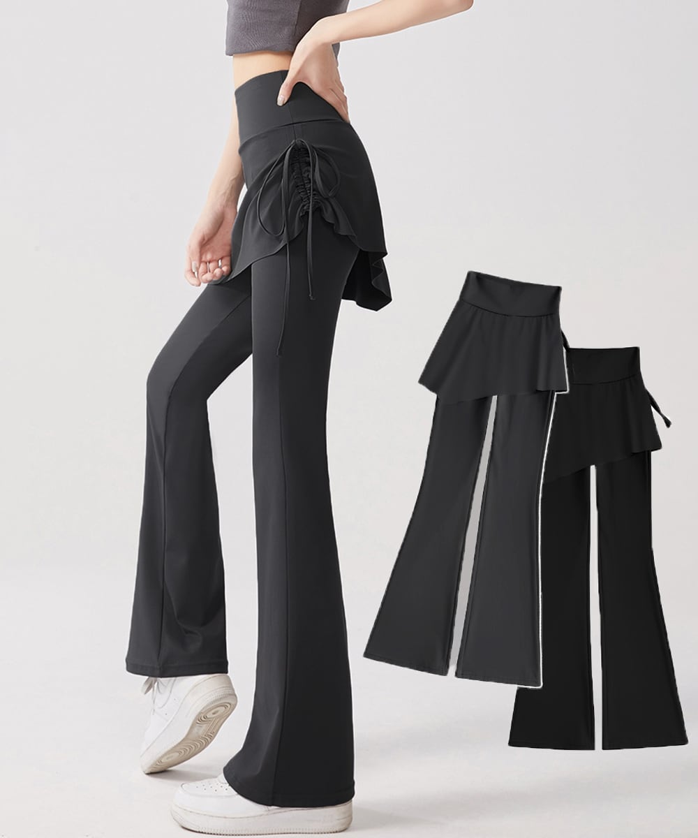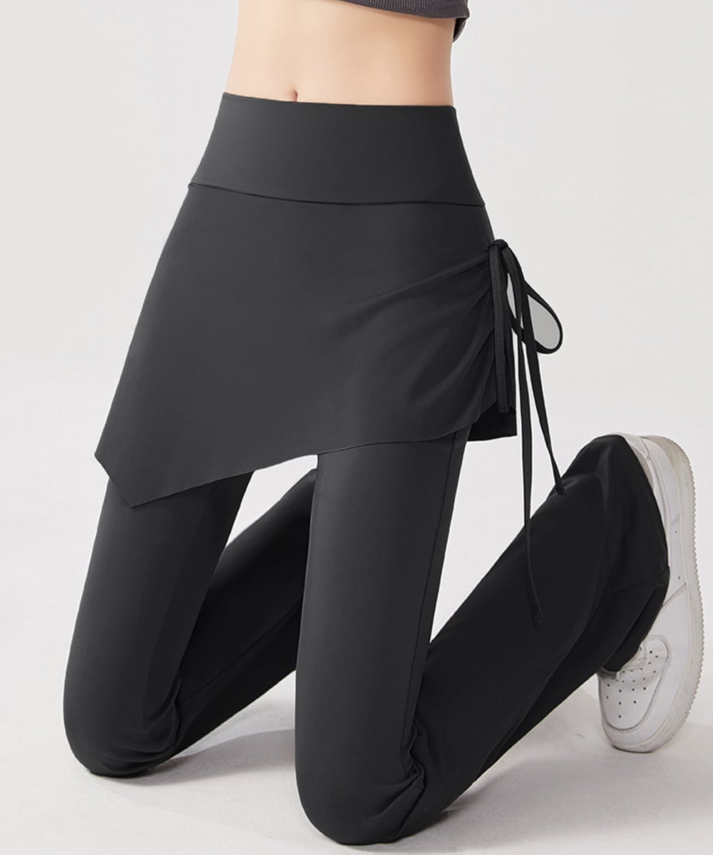 スポーツ・フィットネス・ヨガに最適な、スカート付き一体型レギンス。