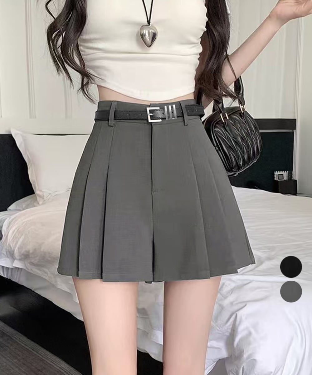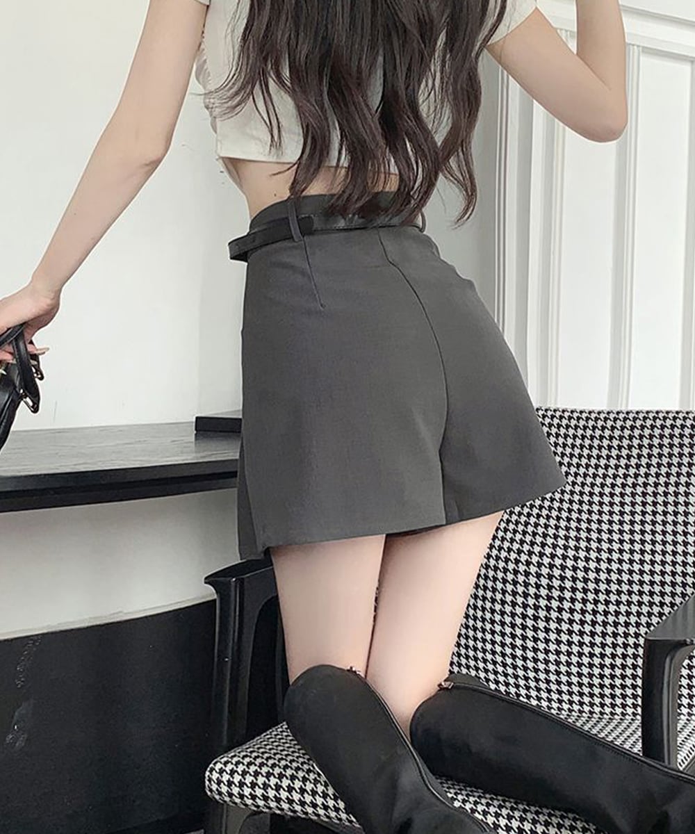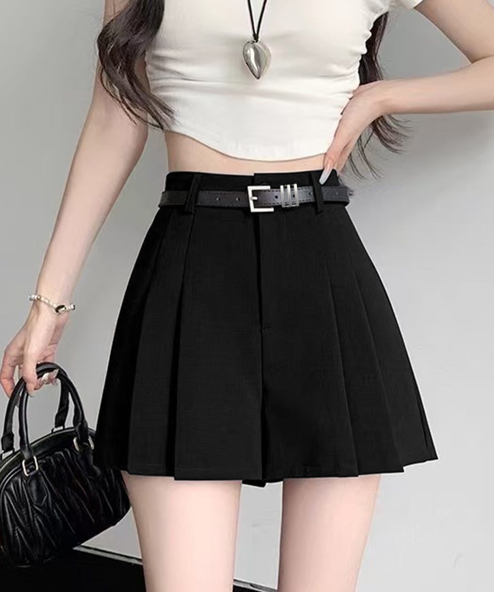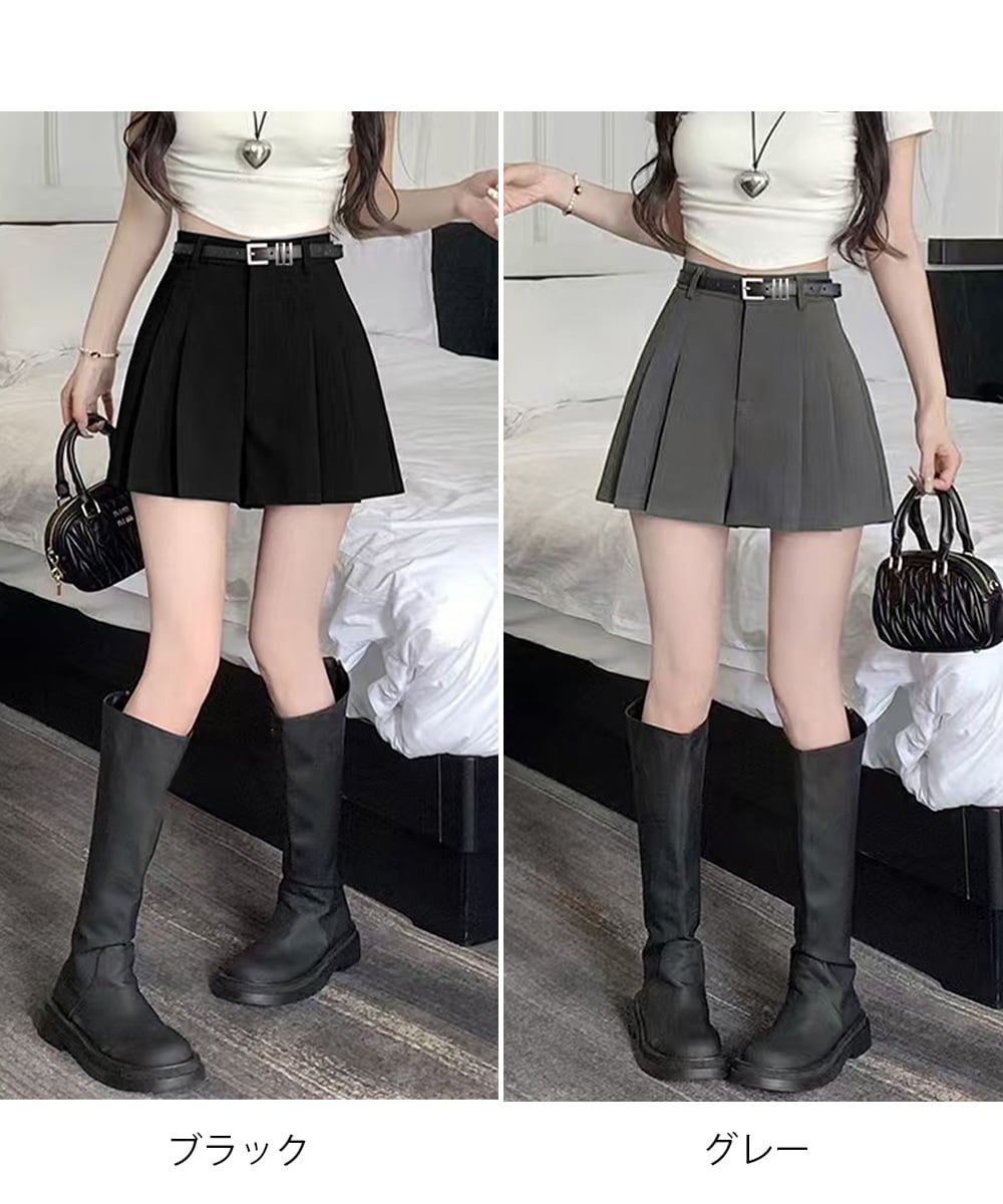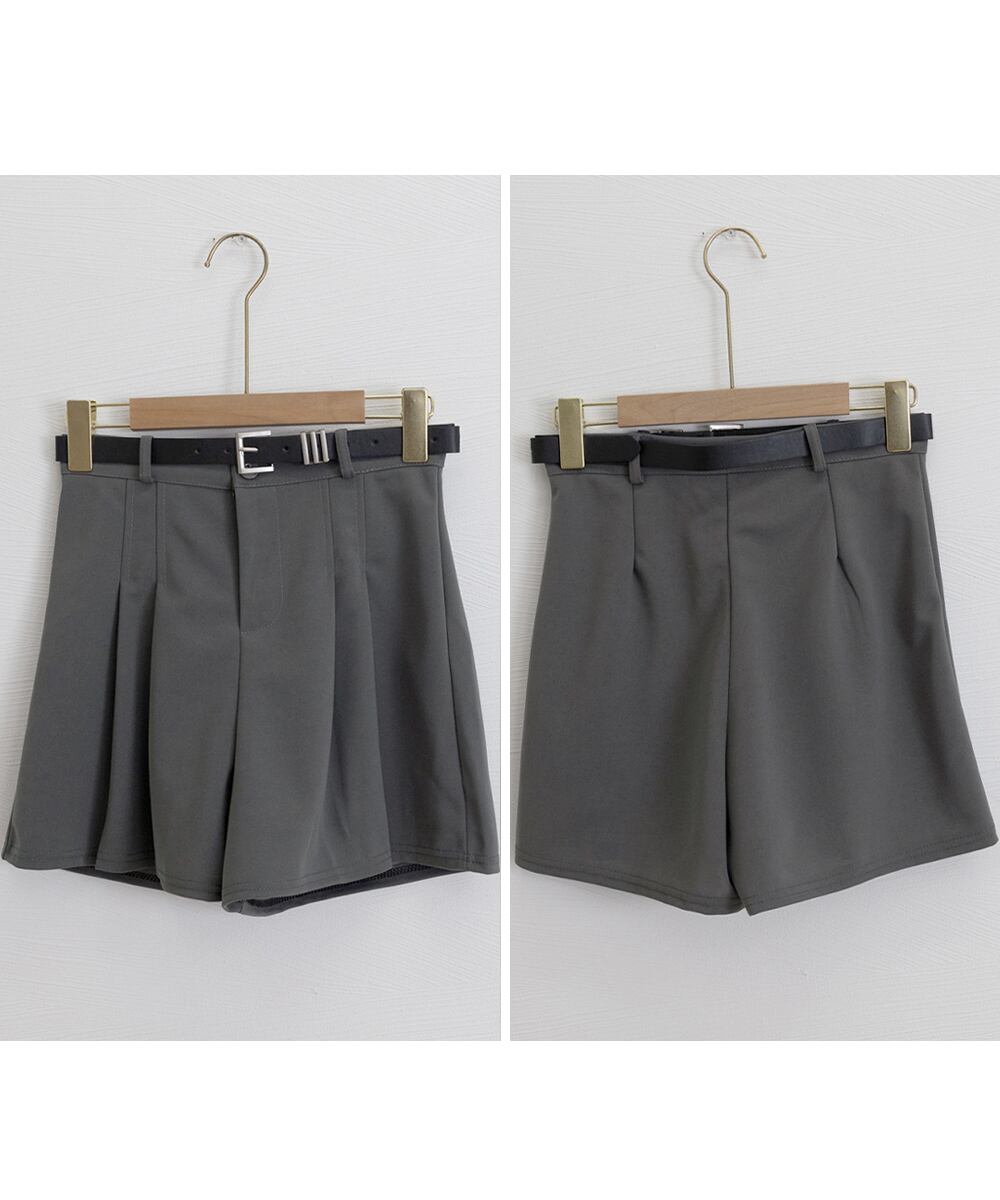 ベルト付プリーツショートパンツレディース