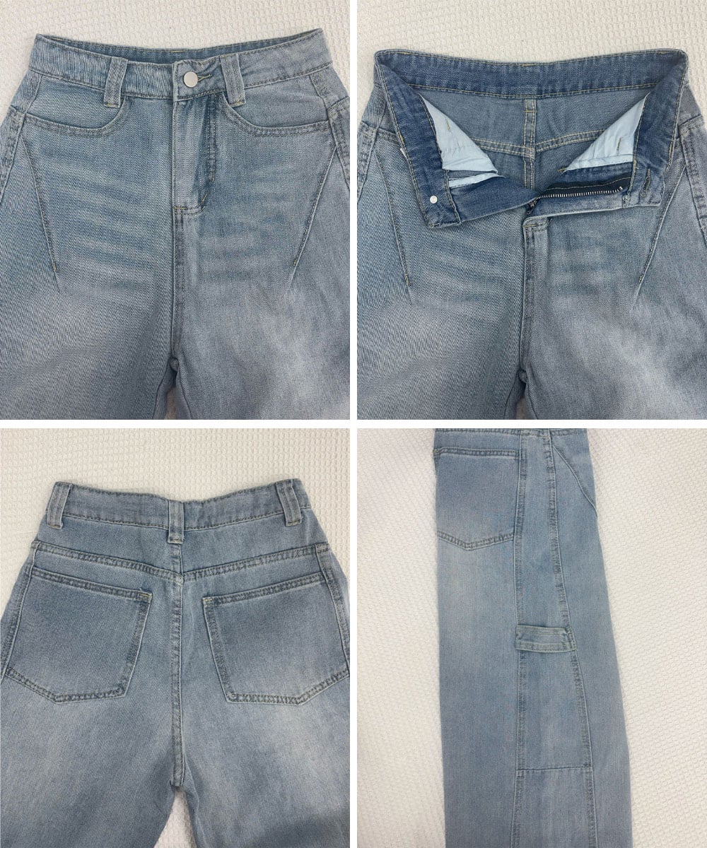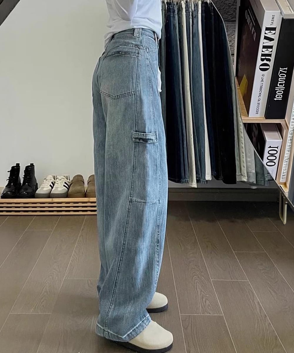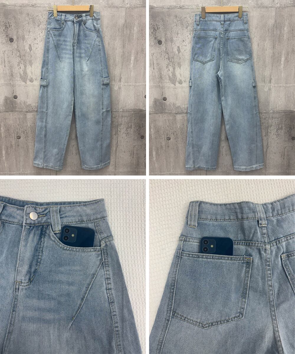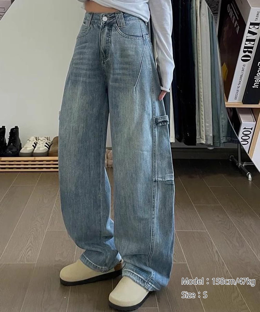 ワイドデニムパンツ韓国風ステッチジーンズ