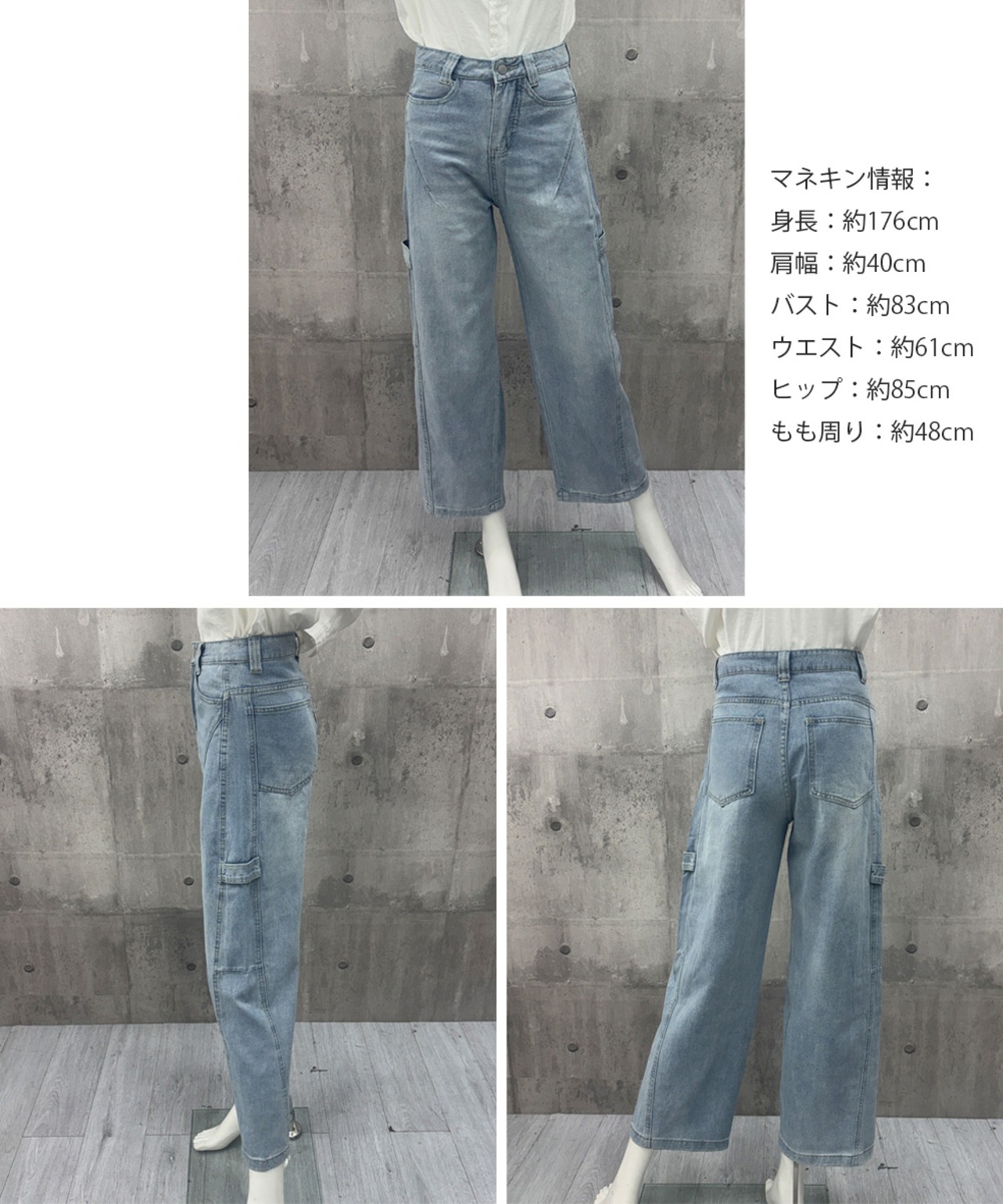 [L]着丈:約100cm 股下:約71cm ウエスト:約76cm ヒップ:約100cm もも周り:約62cm
