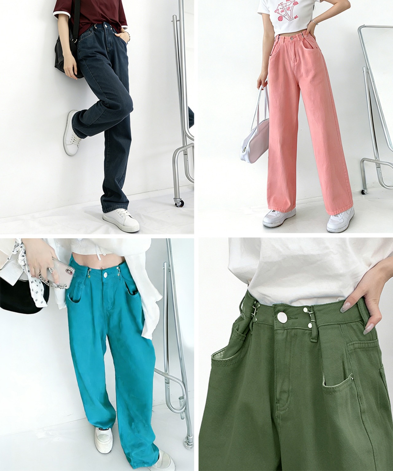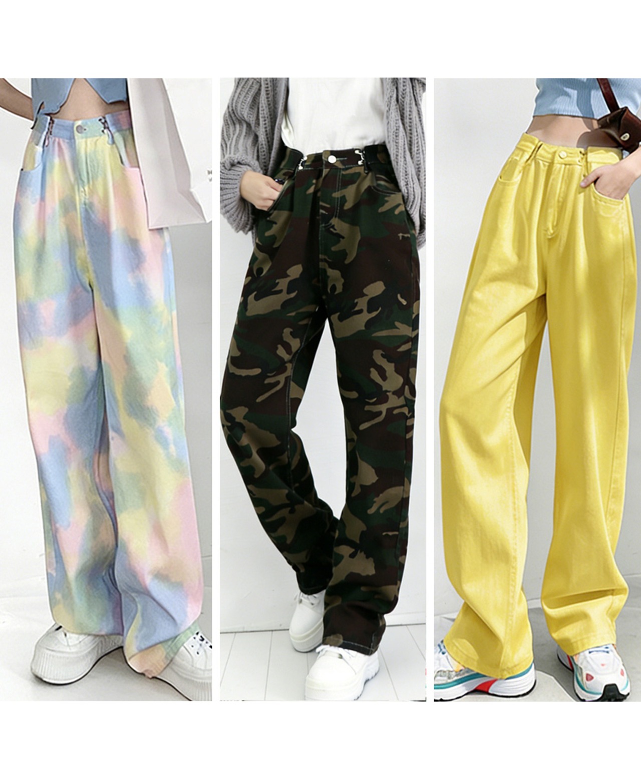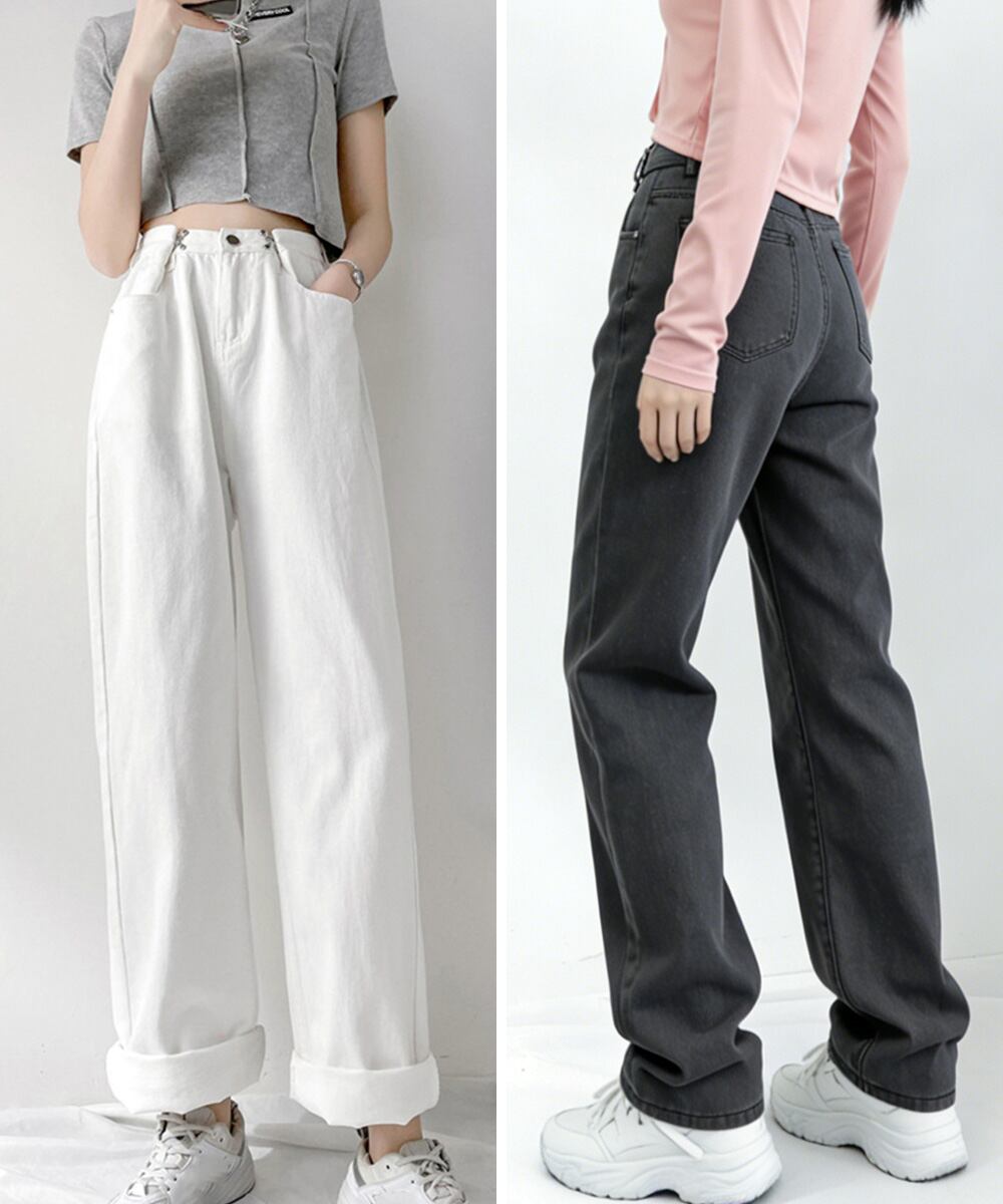 Tシャツやクロップドトップス、スニーカーと合わせた韓国風カジュアルコーデにおすすめ。