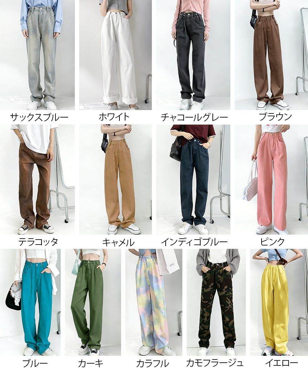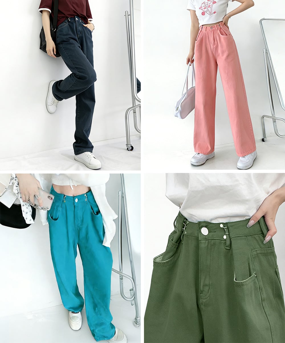 着やせデニム細見え カラーデニムお洒落 アジャスターデニム