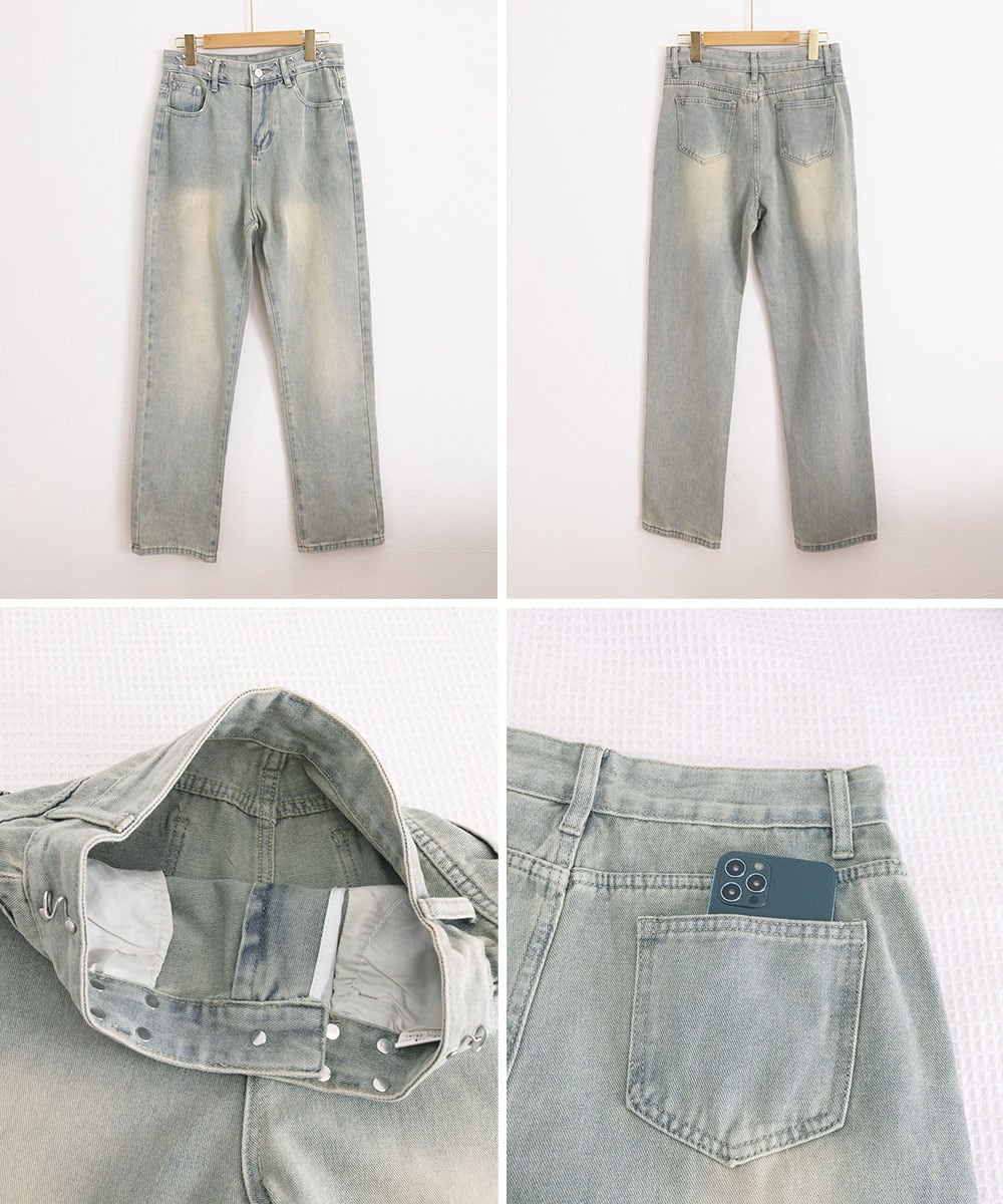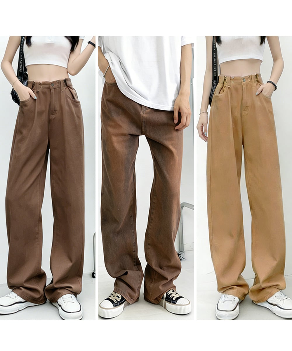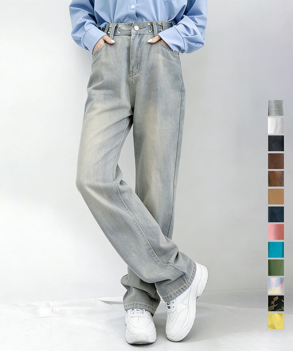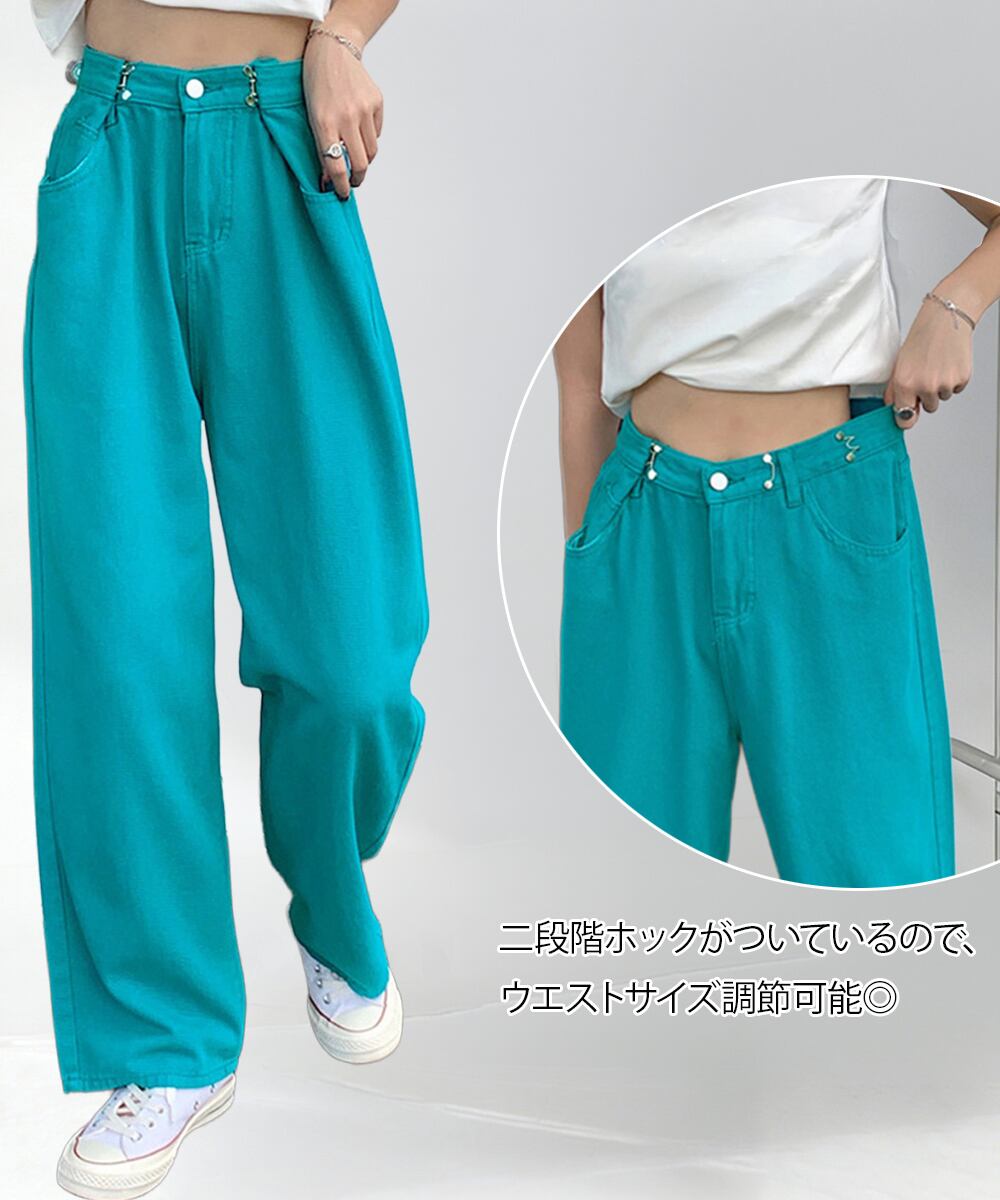 ウエストフックデニムパンツワイドジーンズ