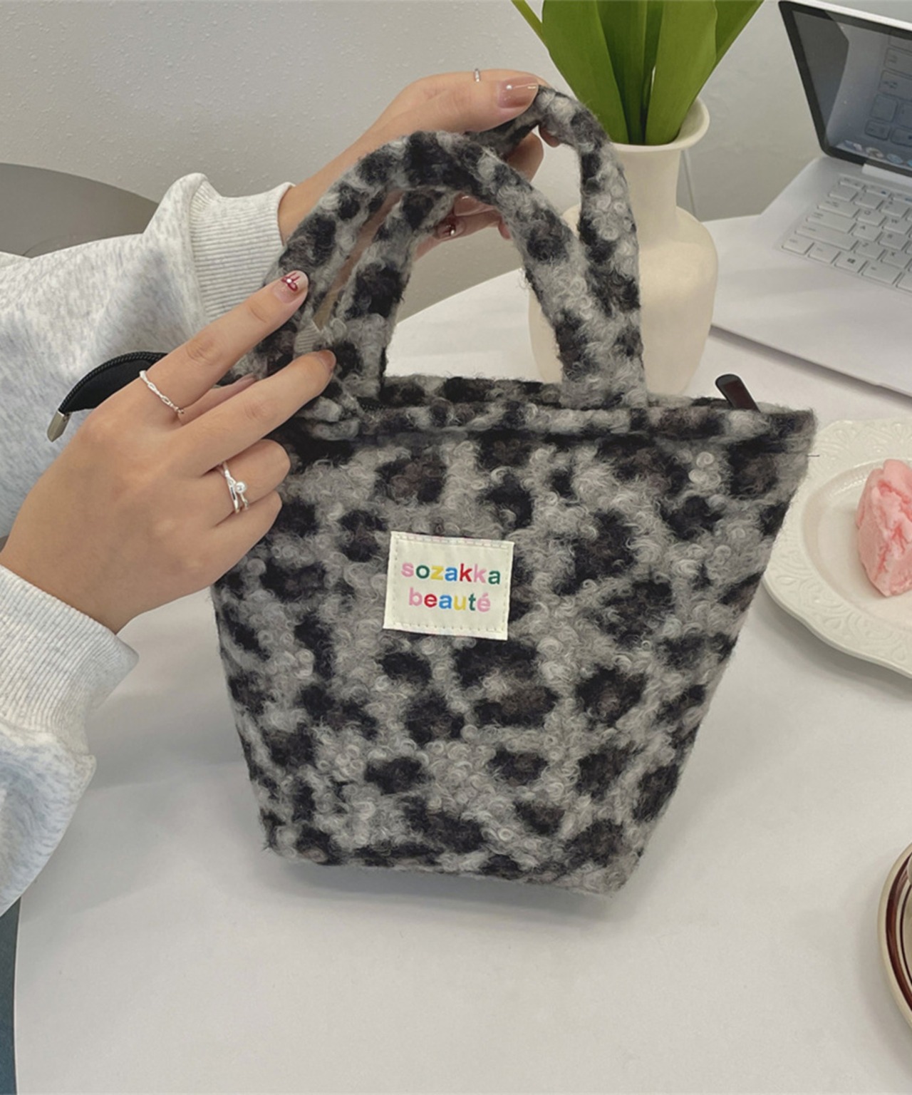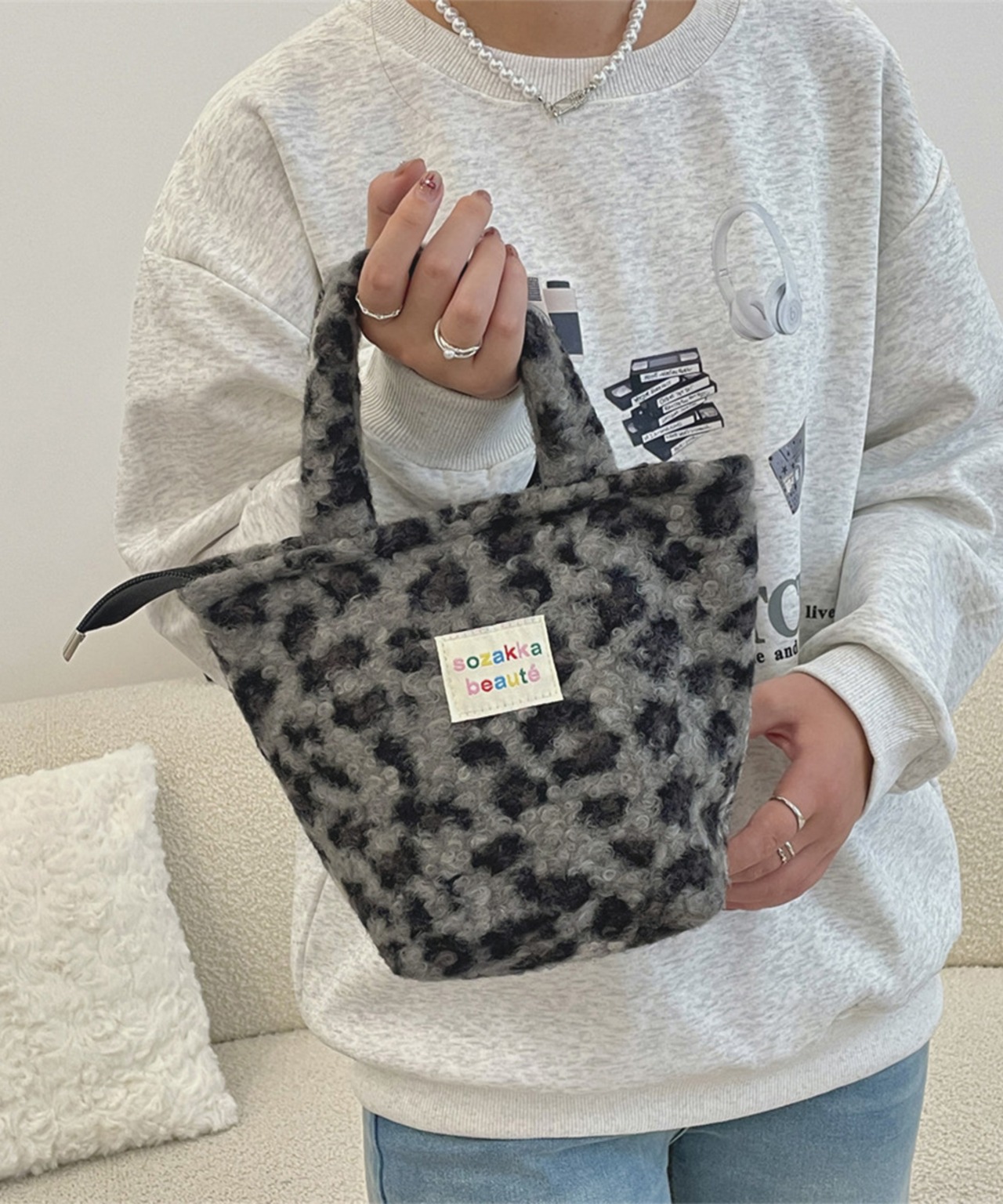 ふかふかの手触りが魅力のレオパード柄バッグ。