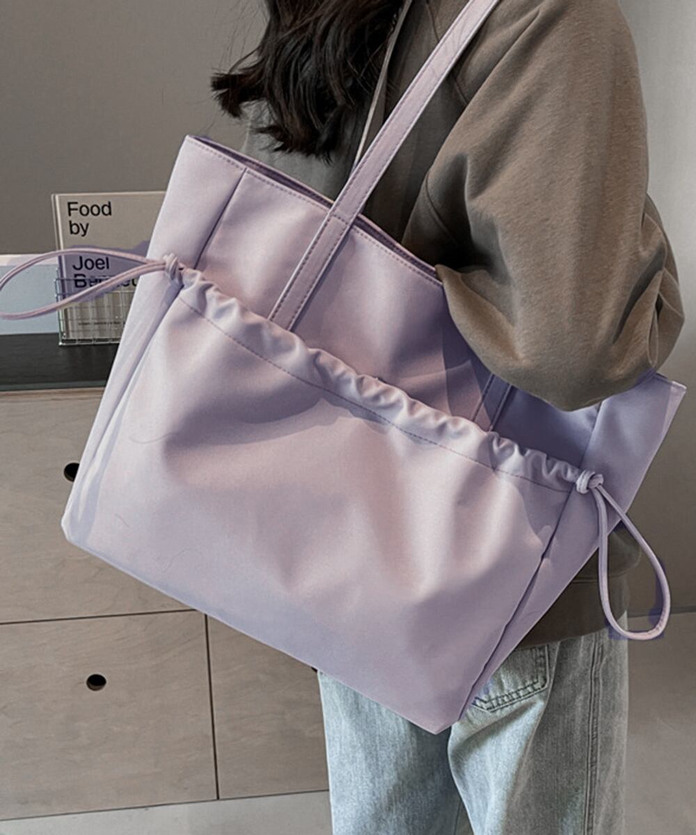 丈夫なナイロン素材で仕上げた、シンプルで使いやすい大容量トートバッグ。