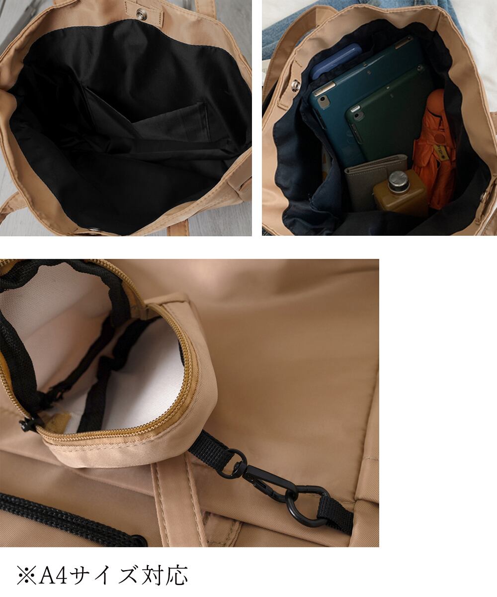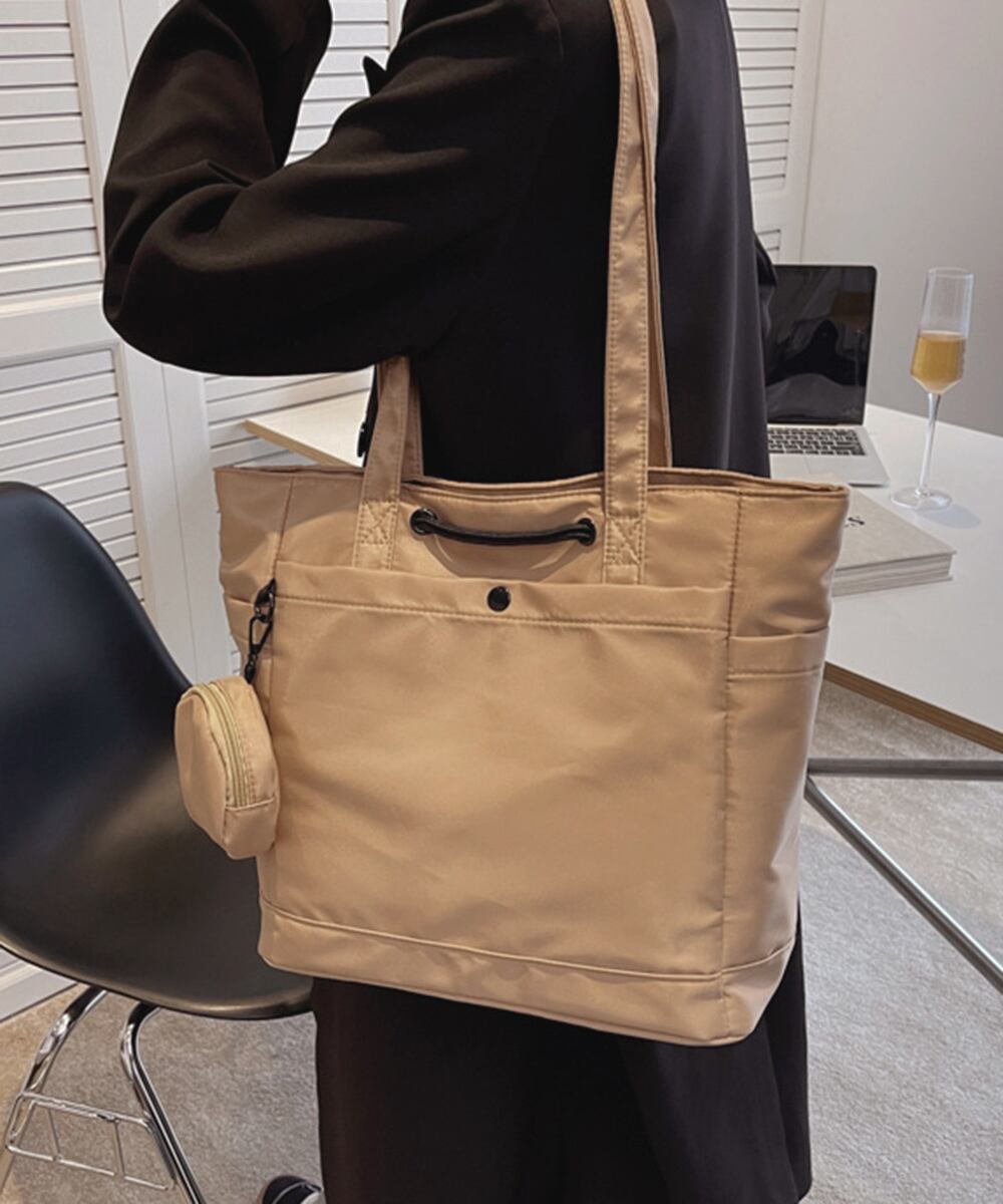 ミニポーチ付き ナイロンバッグ 軽量 手提げバッグ 通勤通学 肩掛けバッグ オフィスカジュアルマザーズバッグ 無地bag