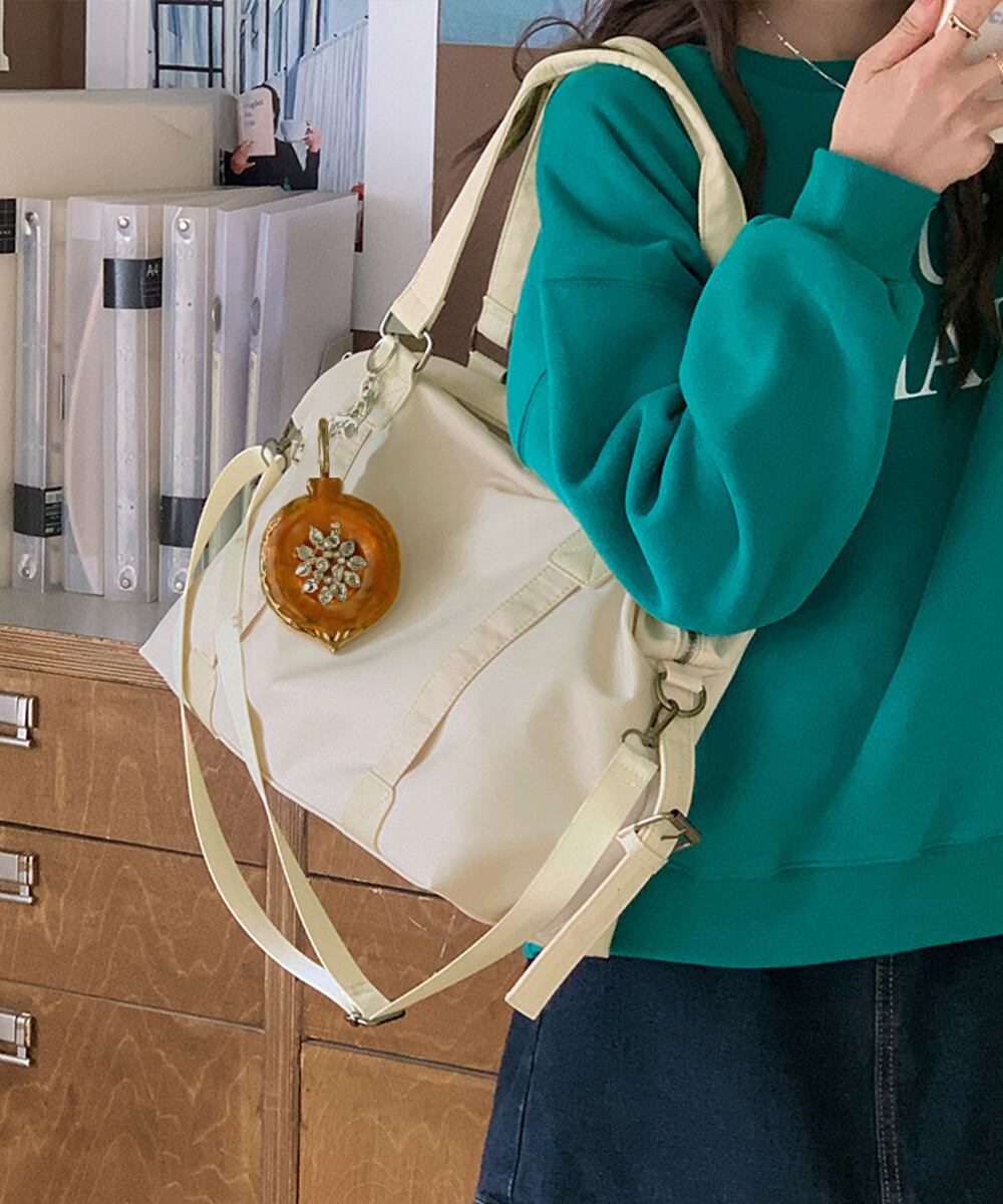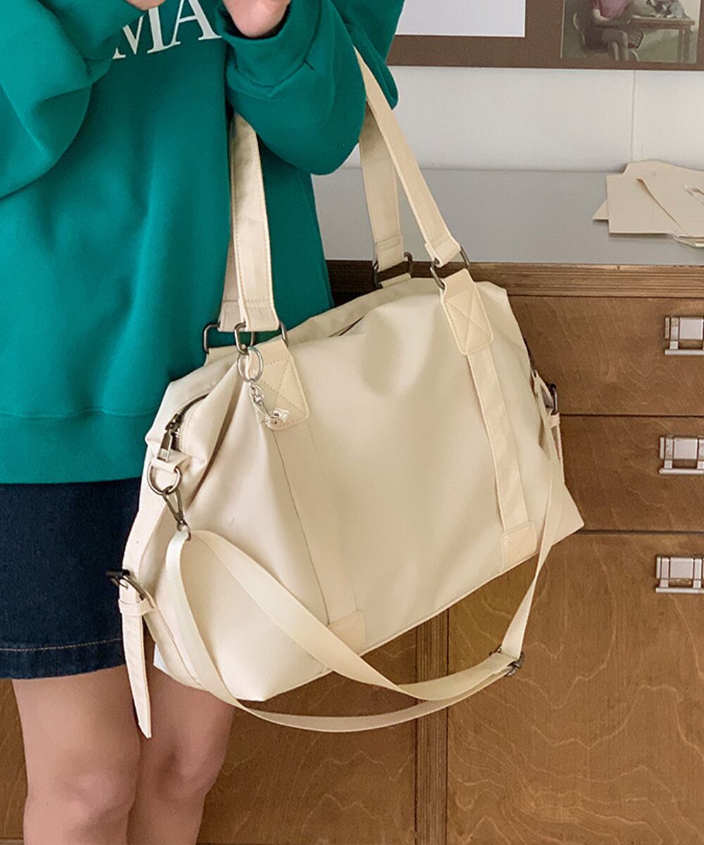 丈夫なナイロン素材を使用した、大容量の2WAYトートバッグ。