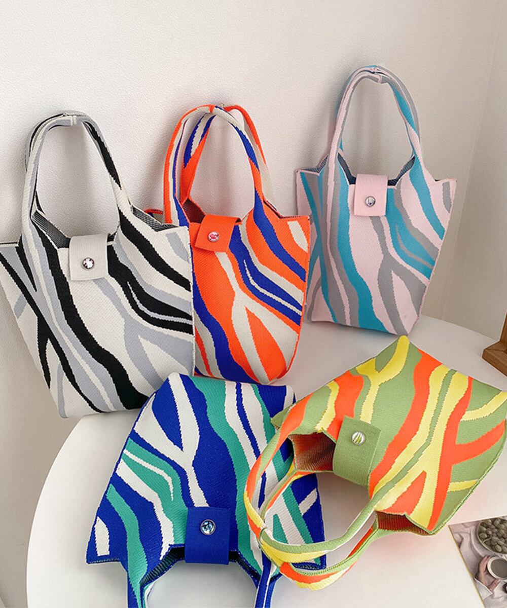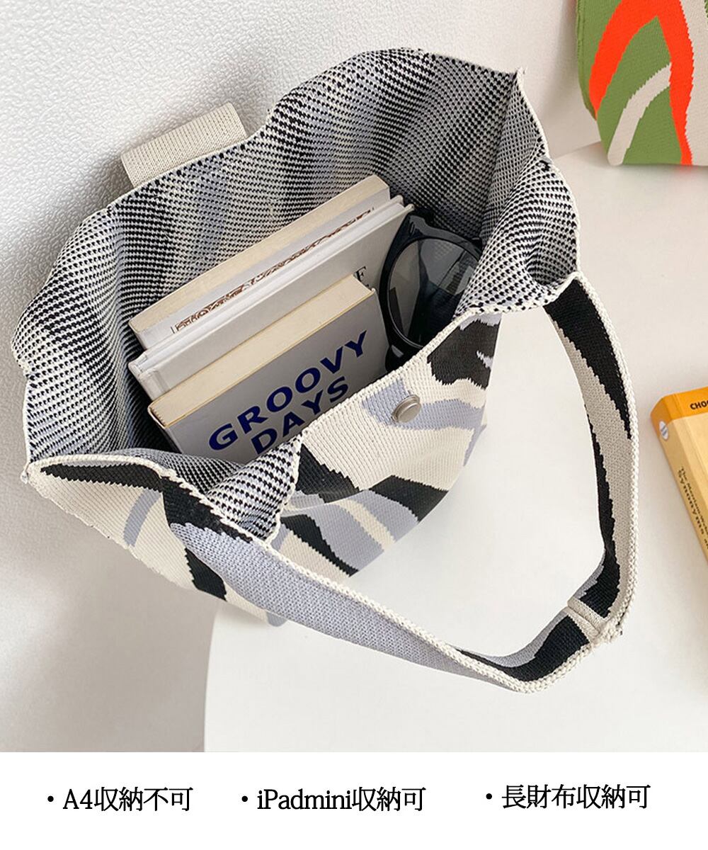 可愛い ニット編み 縦型 トートバッグ おしゃれ サブバッグ 軽量 折り畳める鞄 ボタン付き ランチバッグ 手提げバッグ