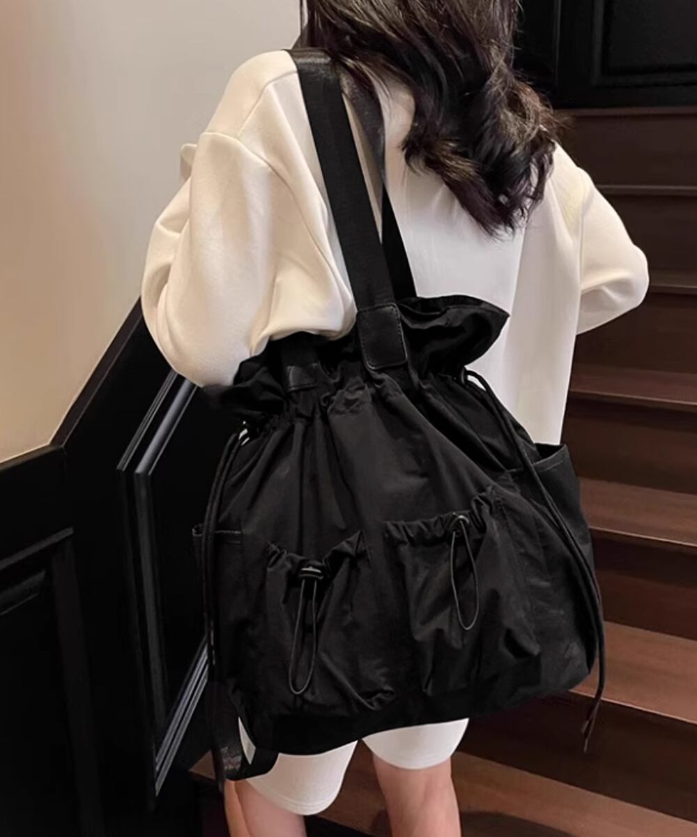 カジュアル ドローストリングバッグ レディース おしゃれ 肩掛けカバン 大容量 トレンドバッグ 韓国ファッション 軽量