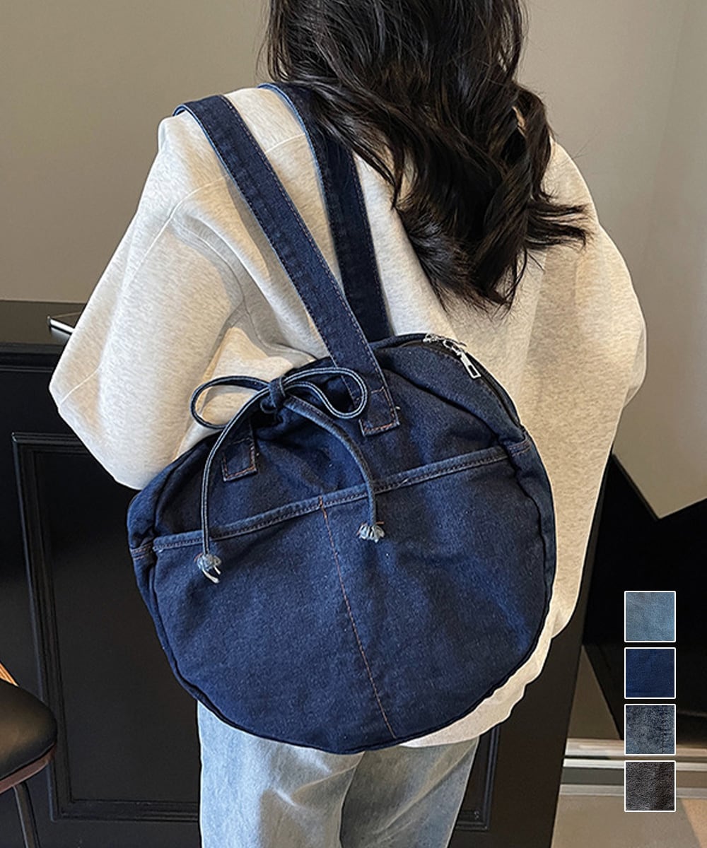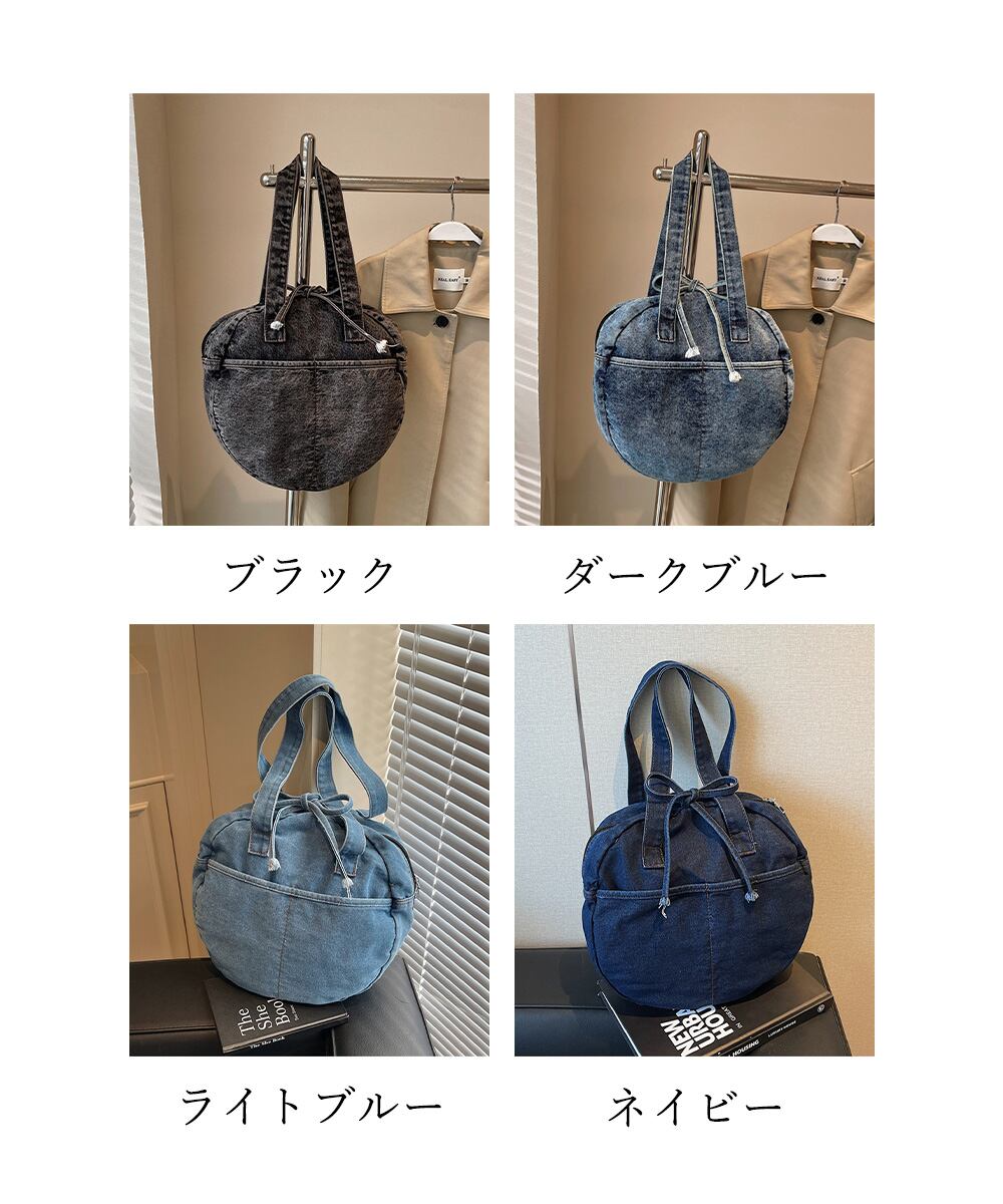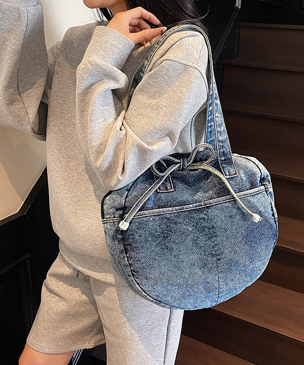 カジュアルな雰囲気が可愛いデニム素材のラウンドバッグです。