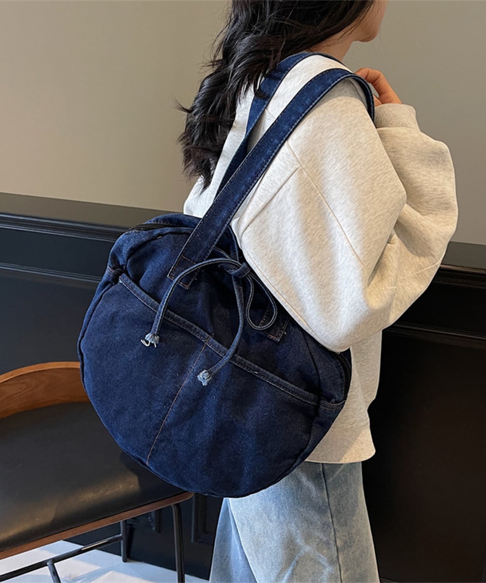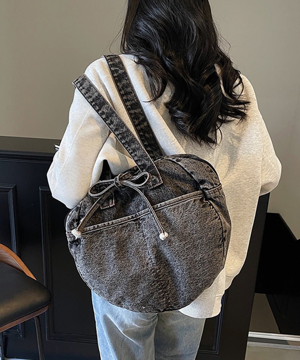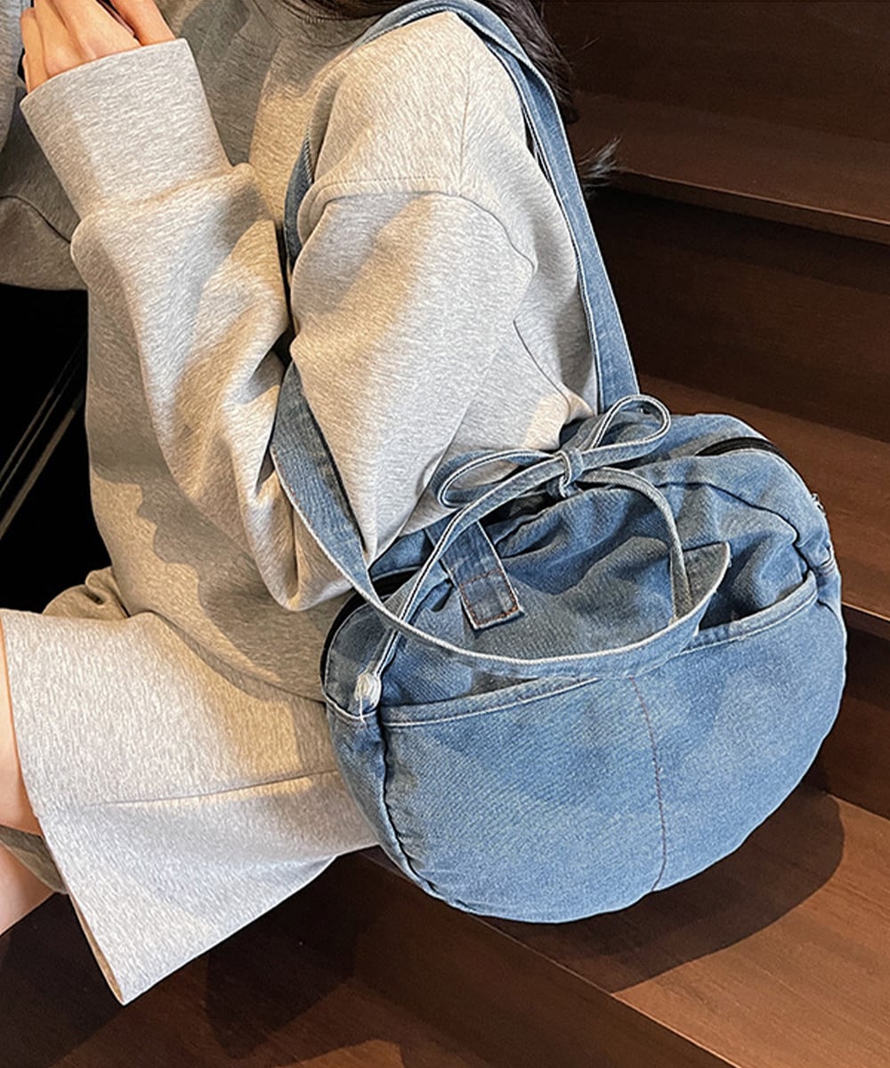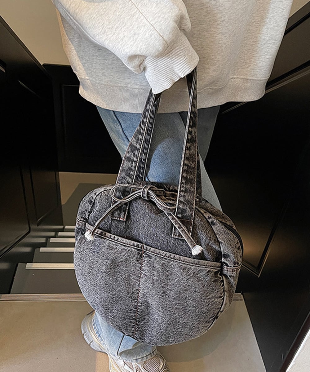 カジュアルな雰囲気が可愛いデニム素材のラウンドバッグです。