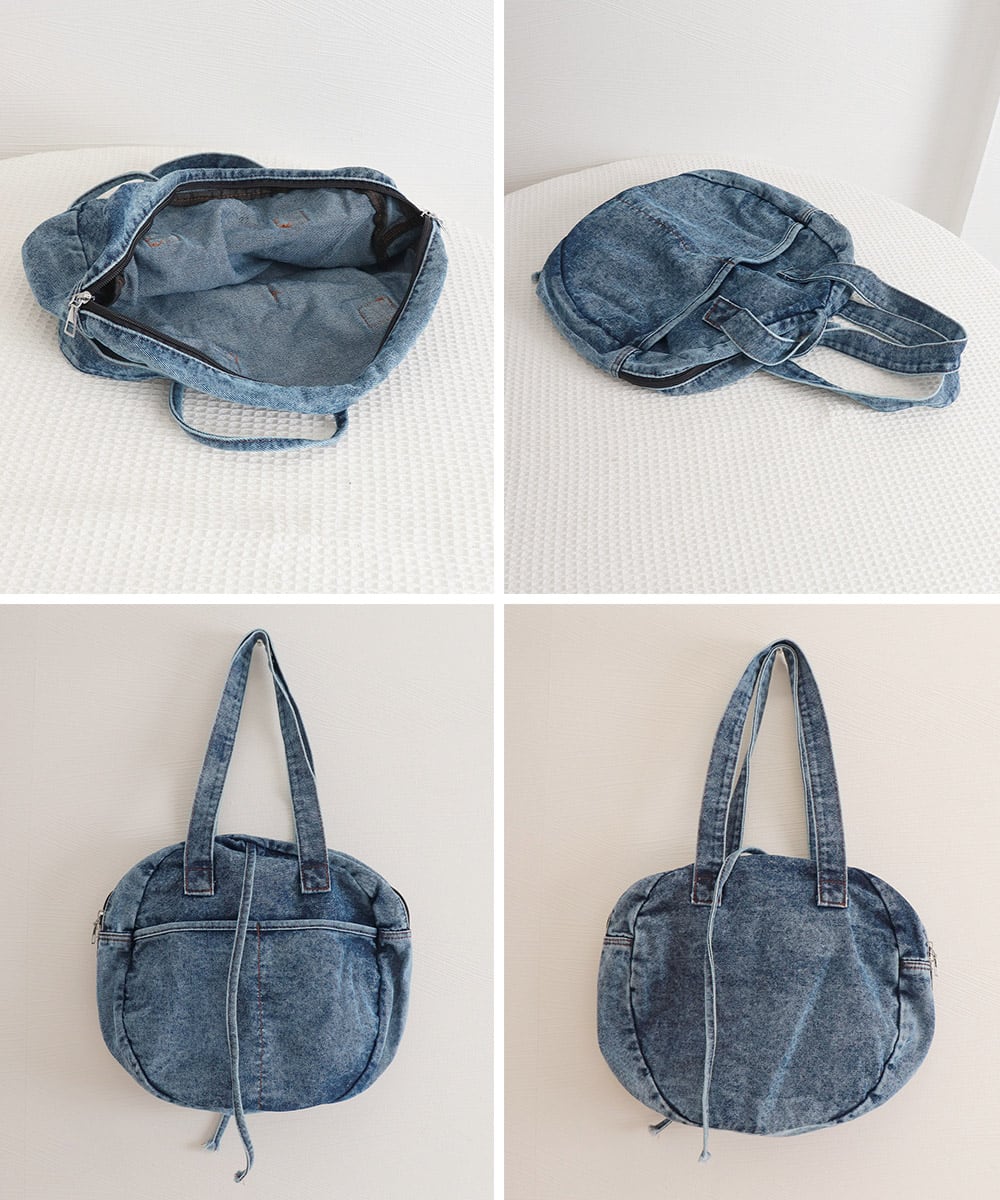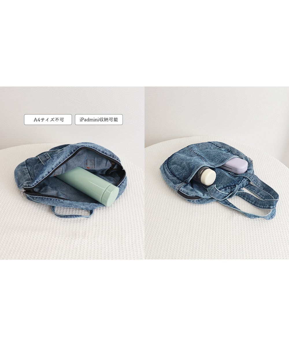 デニムトートバッグ ラウンドバッグ 無地