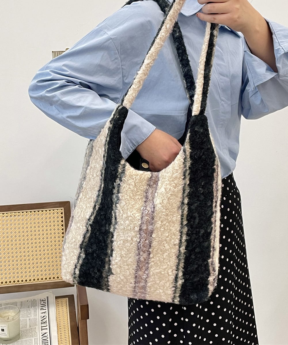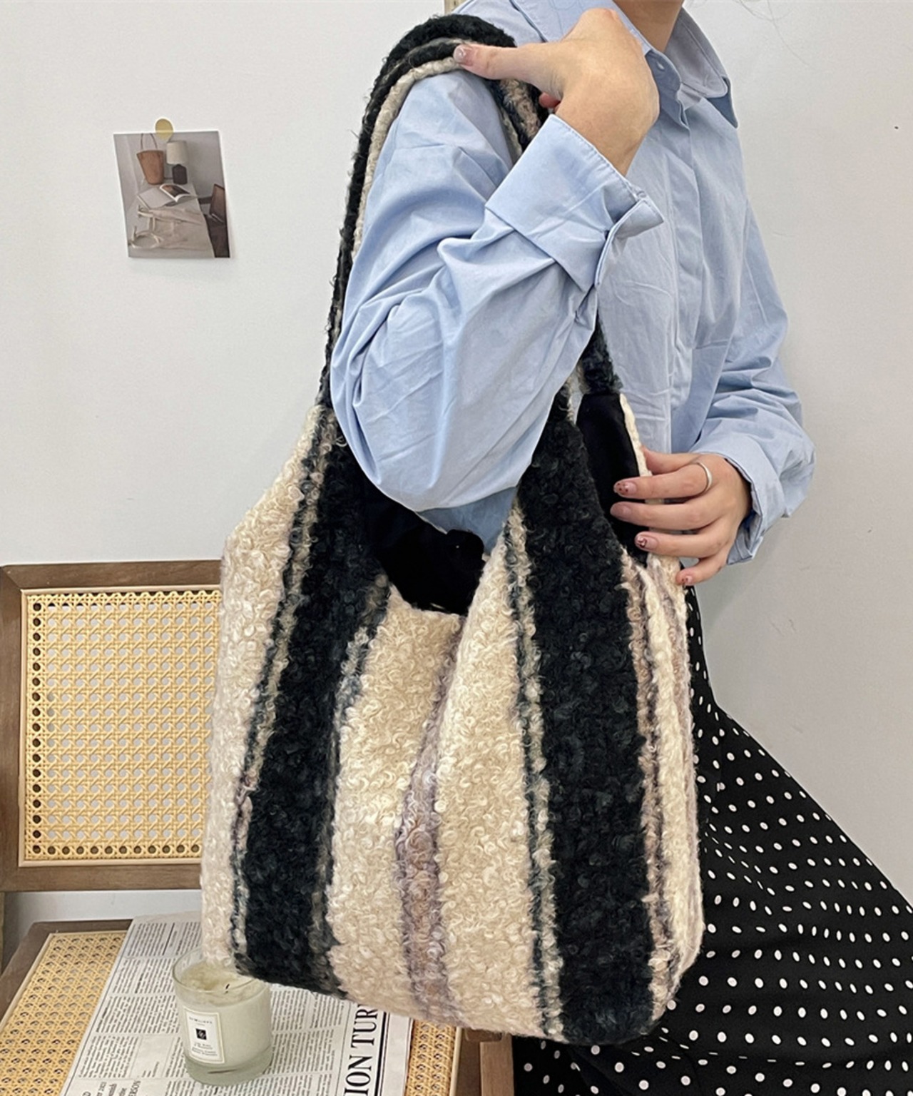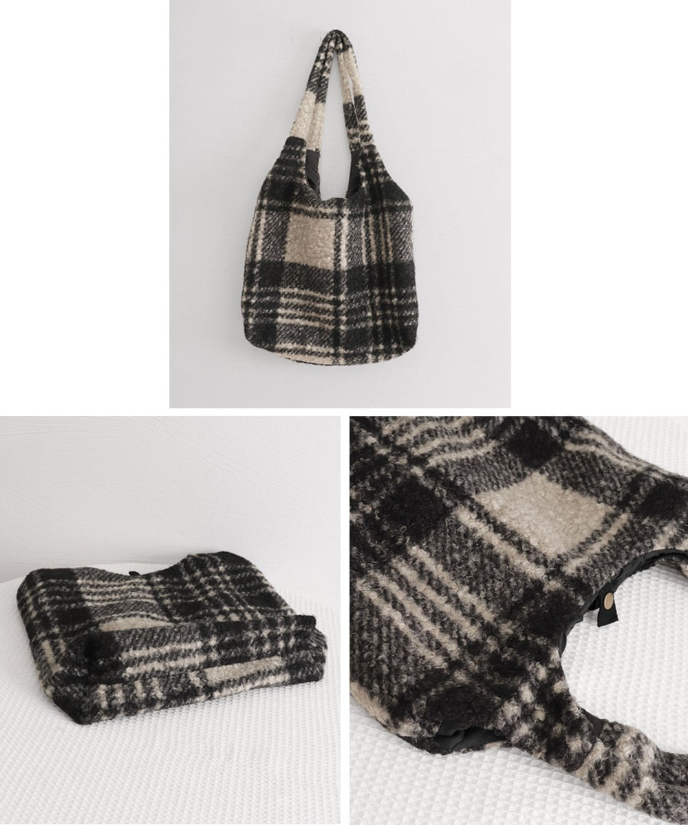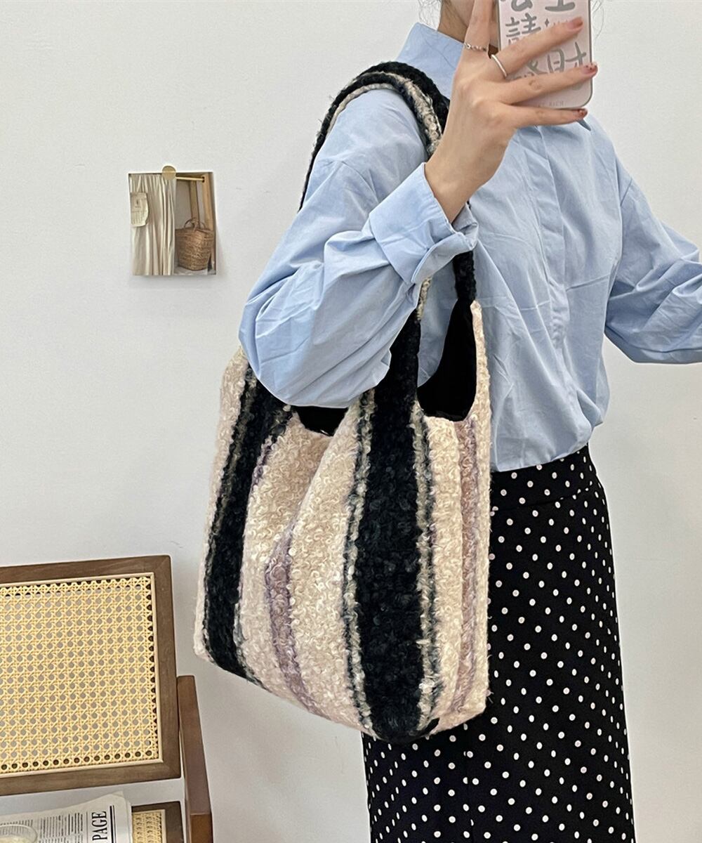 シンプルで使い勝手の良い、チェック柄とストラップ柄のボアトートバッグ。