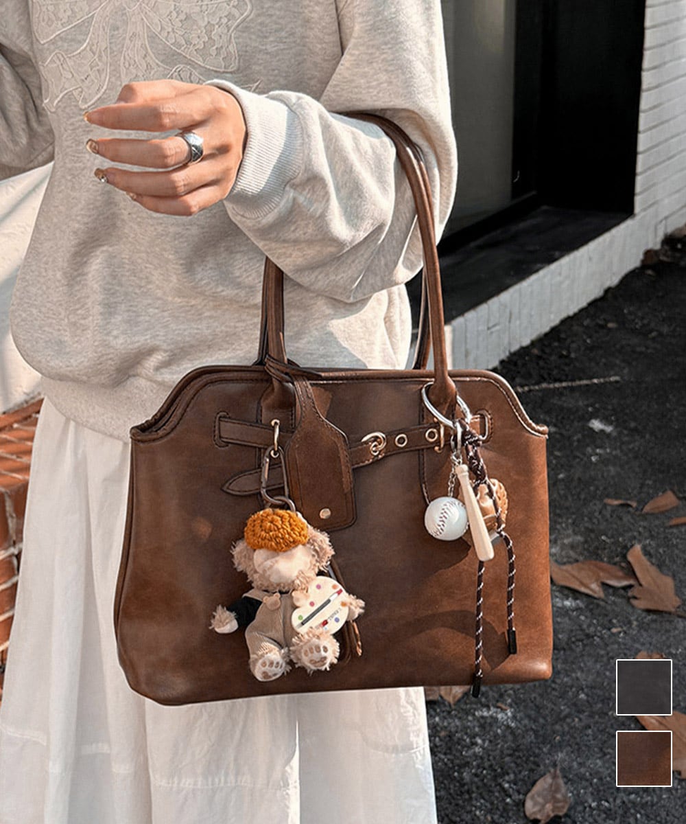 フロントにあしらったベルトデザインが程よい存在感を加え、クラシックな雰囲気を引き立てる。