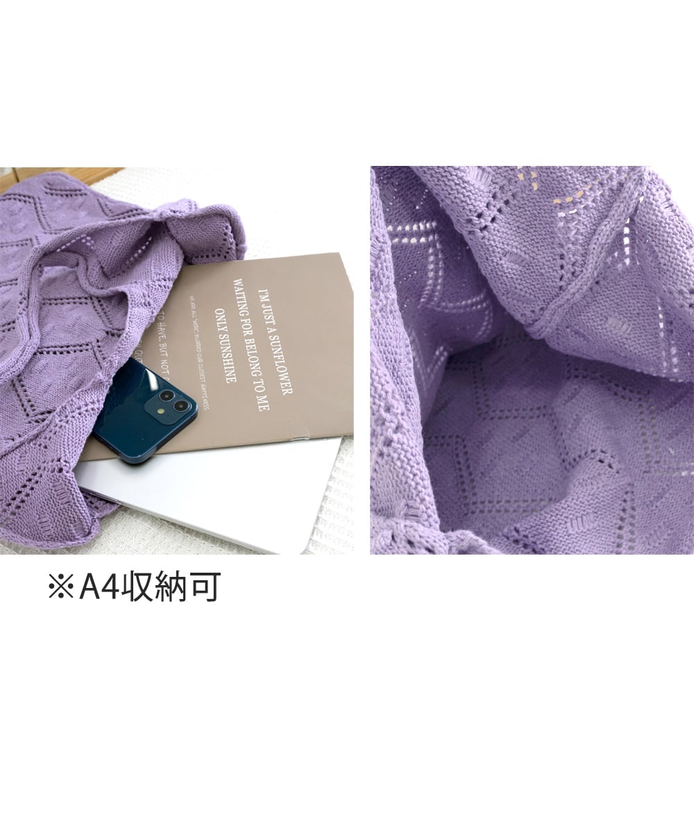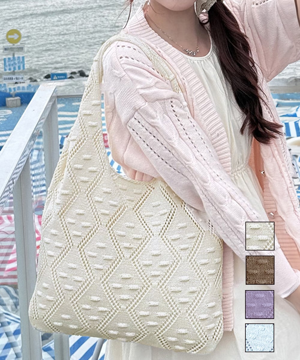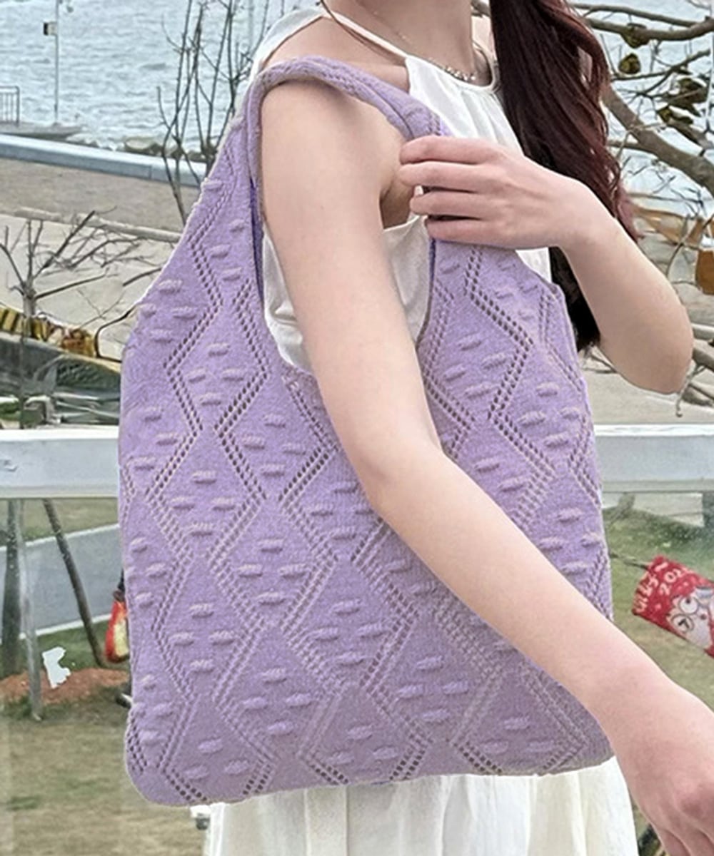 ナチュラルな編み柄がコーデにこなれ感をプラスするニットトートバッグ。