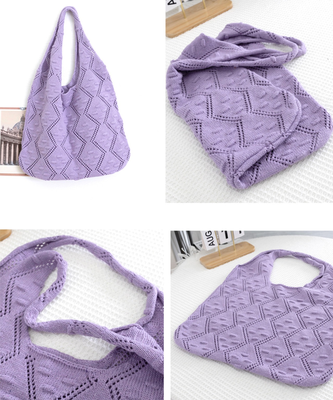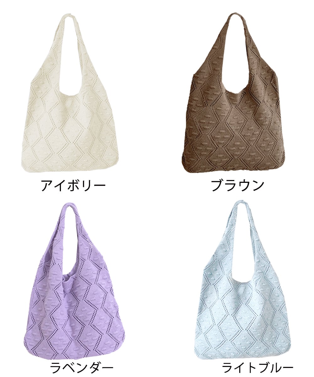 柔らかいシルエット 編みバッグ お洒落 お散歩バッグ 無地