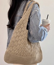 レトロな雰囲気が魅力の毛糸編みニット素材を使用した、手持ち・肩掛け対応のニットバッグ。