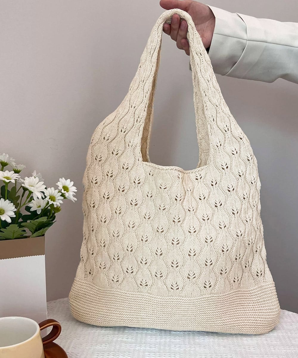 編み込みバッグレディースきれいめ 肩掛けバッグシンプルおしゃれ 大人可愛い毛糸バッグ軽量 ワンショルダーバッグ大容量a4