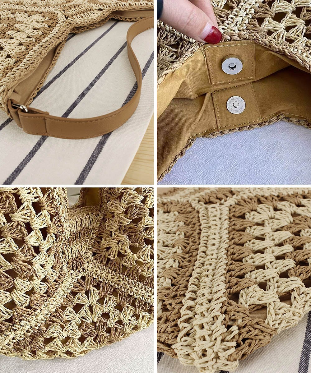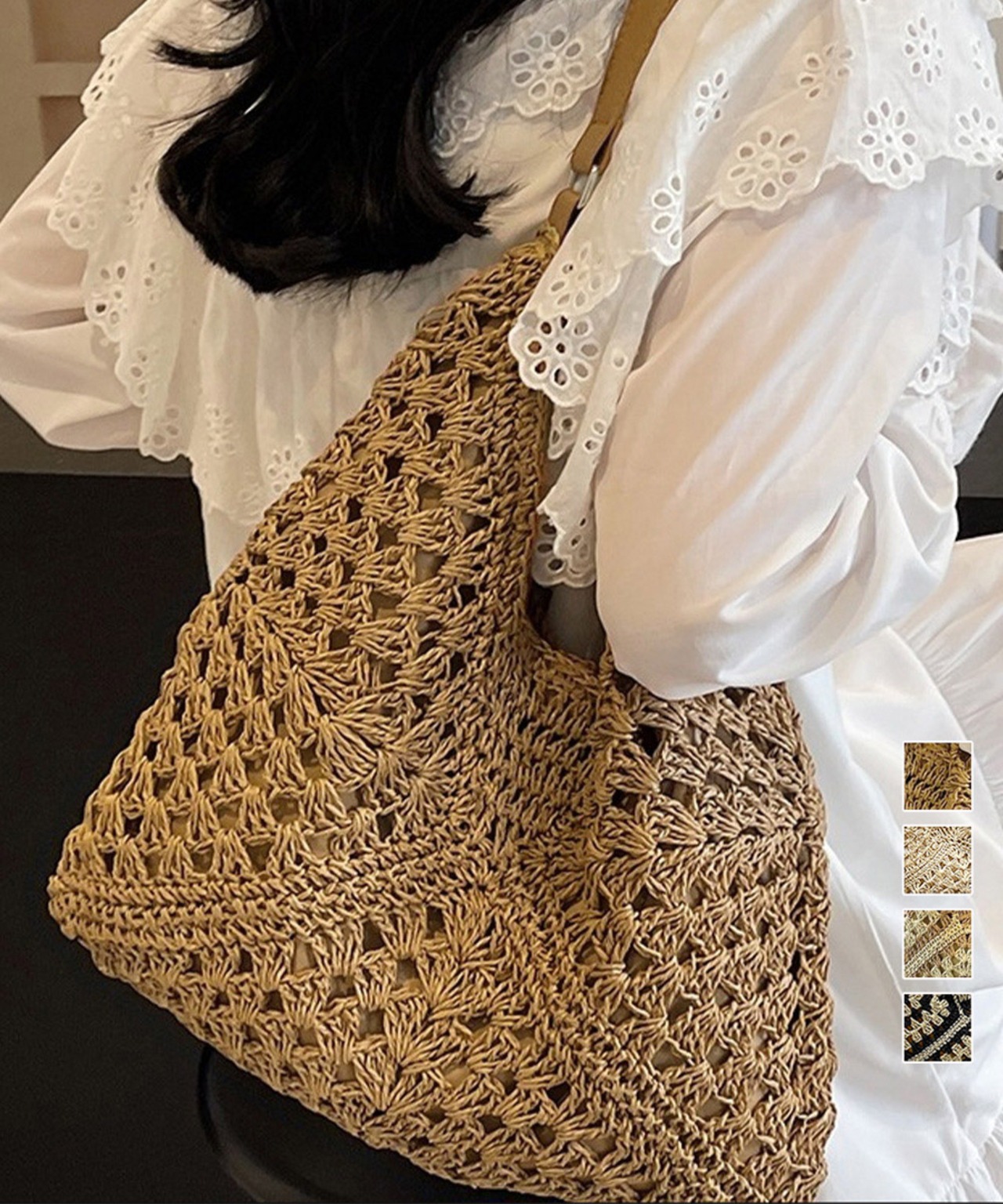 ワンショルダー 編みトート鞄 ビーチバッグ 夏祭り 麦わらバッグ 肩掛けバッグ 大人可愛い手提げバッグ 浴衣バッグ 旅行