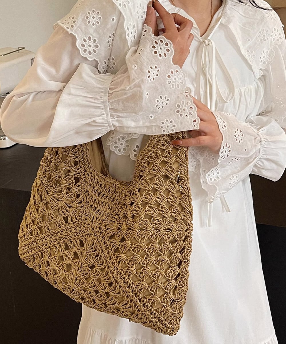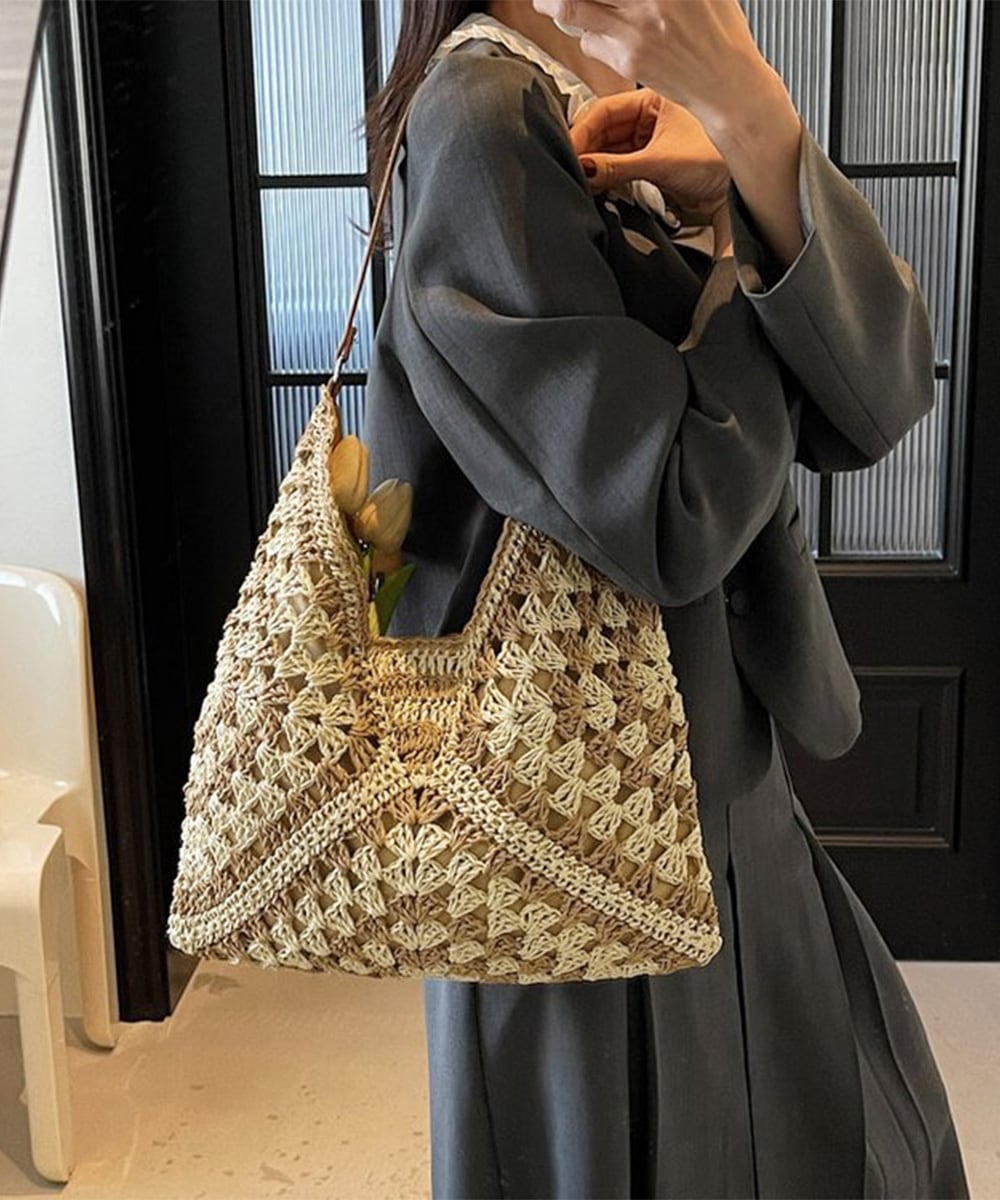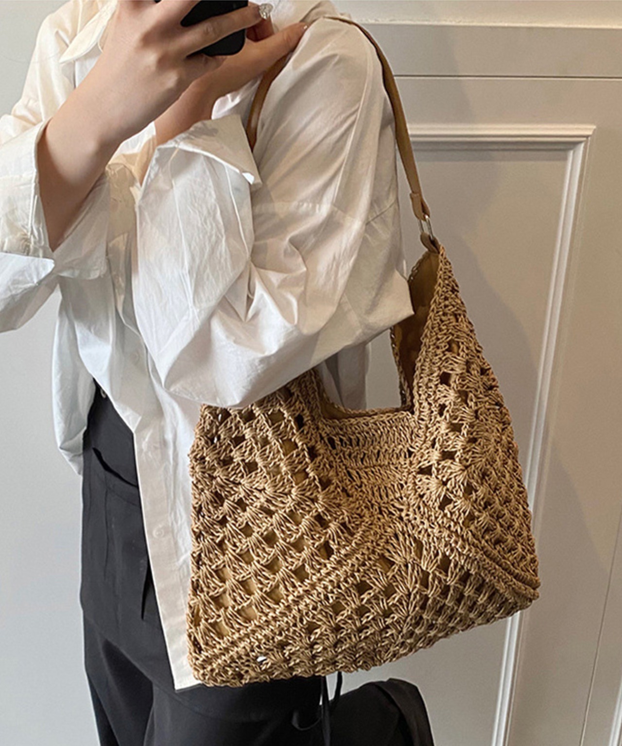 ナチュラルな麦わら素材で編み上げた、夏らしいカジュアルバッグ。