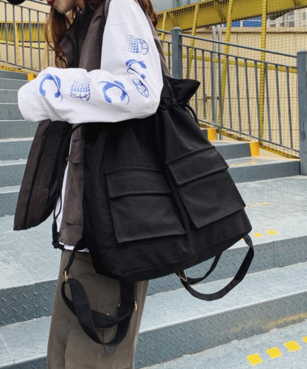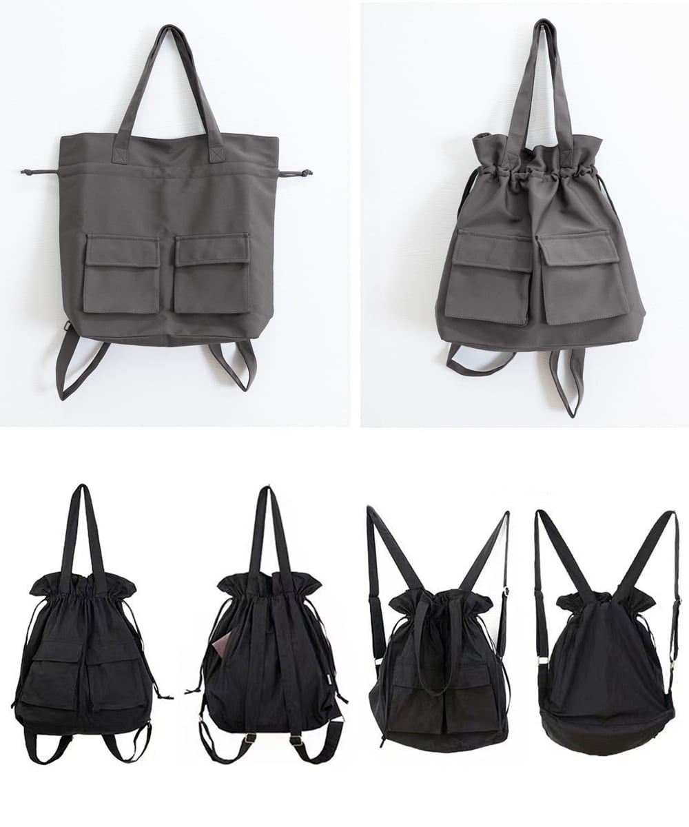 肩掛け・リュック・手提げの3WAY仕様で、コーデやシーンに合わせて自由に使い分け可能。