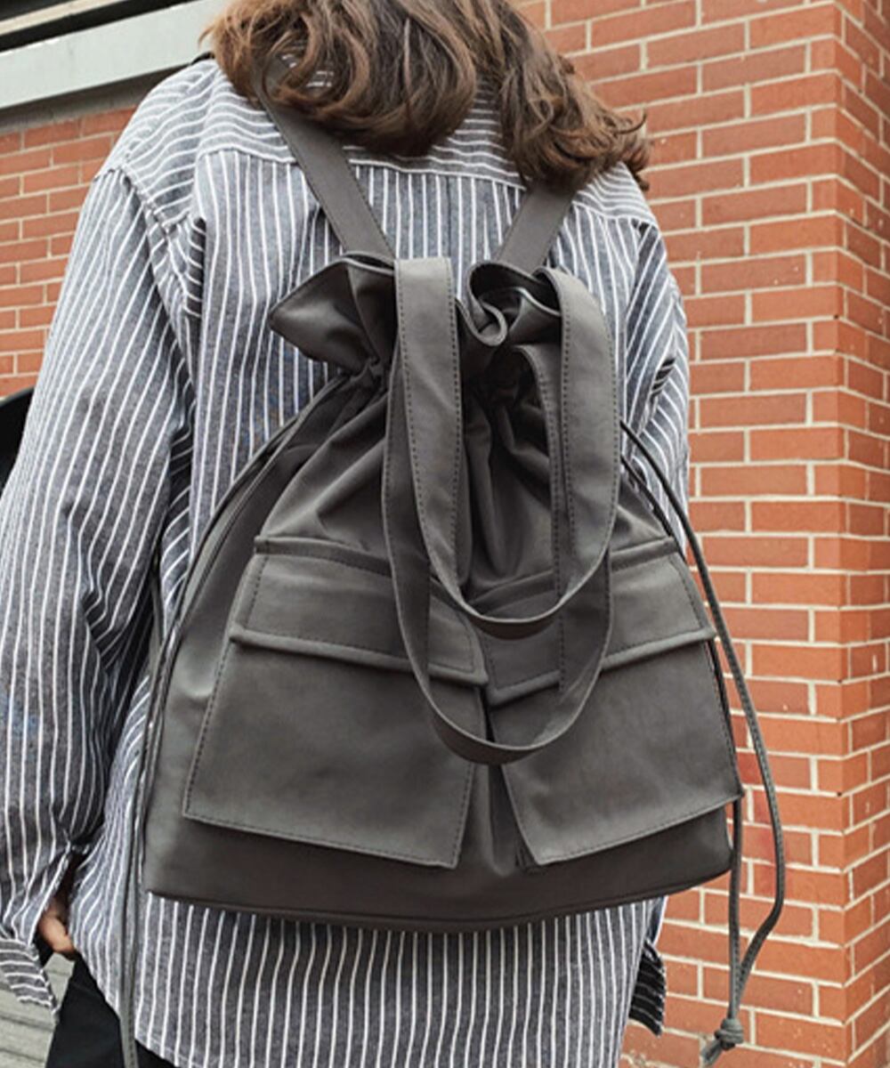 たっぷり収納できる大きめサイズの巾着風リュックサック。