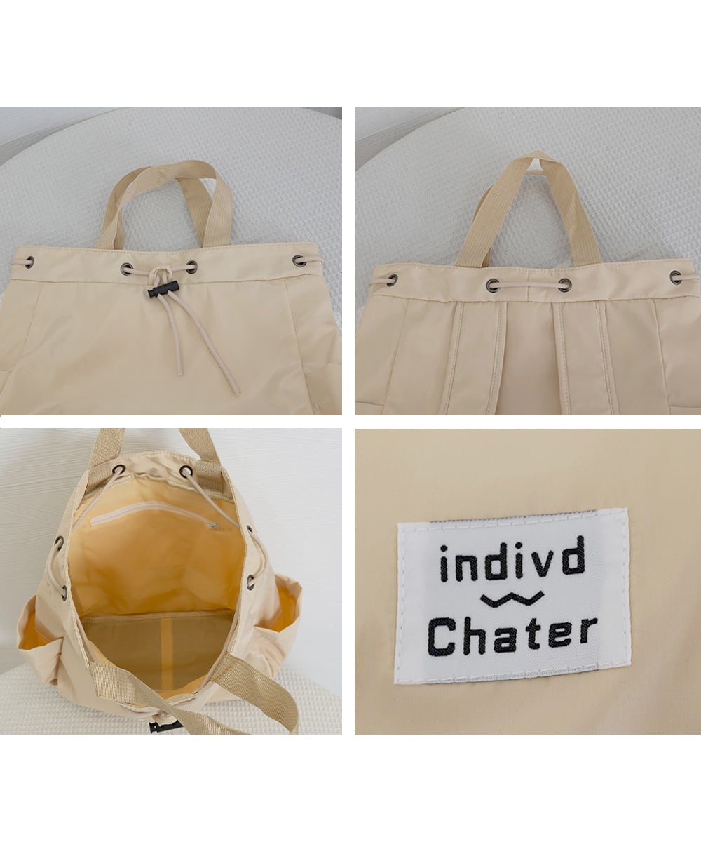 開口部はドローストリング仕様で大きく開き、物の出し入れがしやすいのもポイント。
