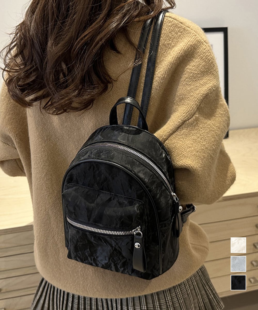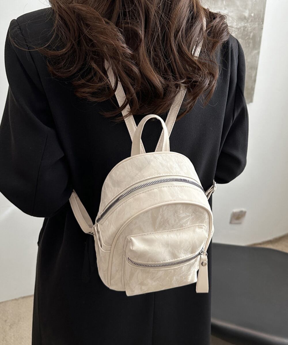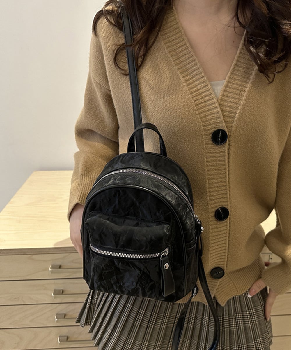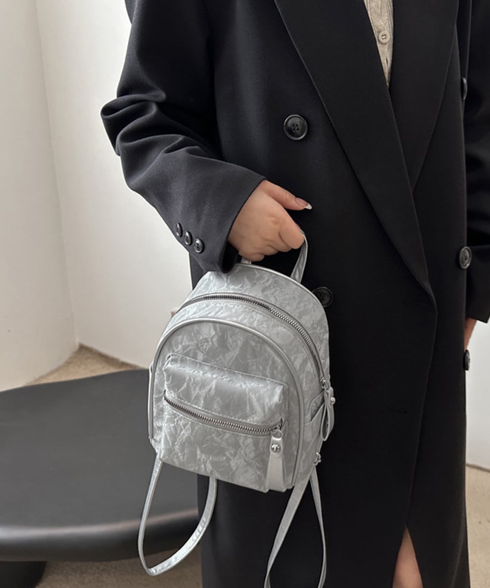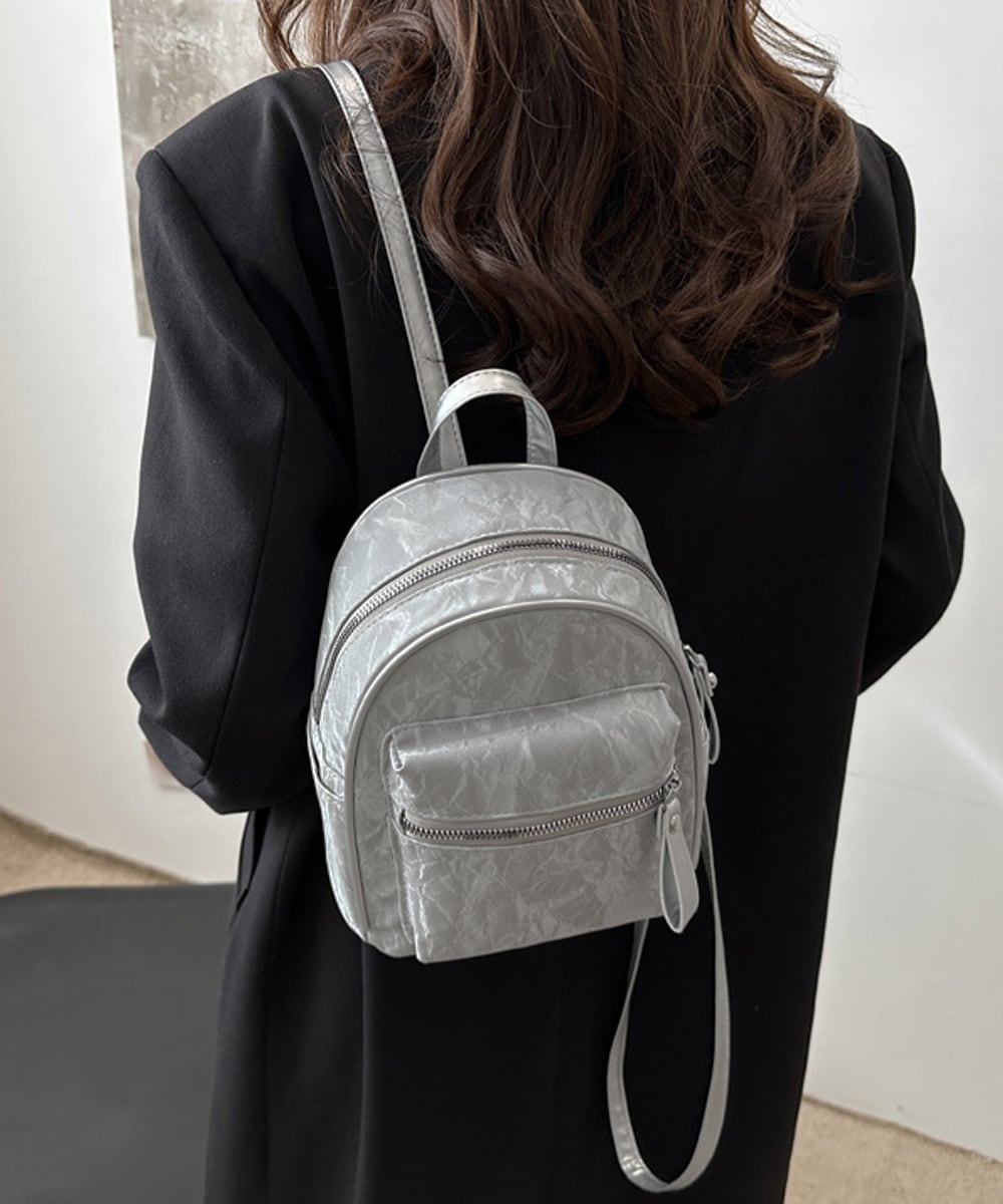 コーディネートのポイントになるマーブル柄が目を引くミニリュックが登場。
