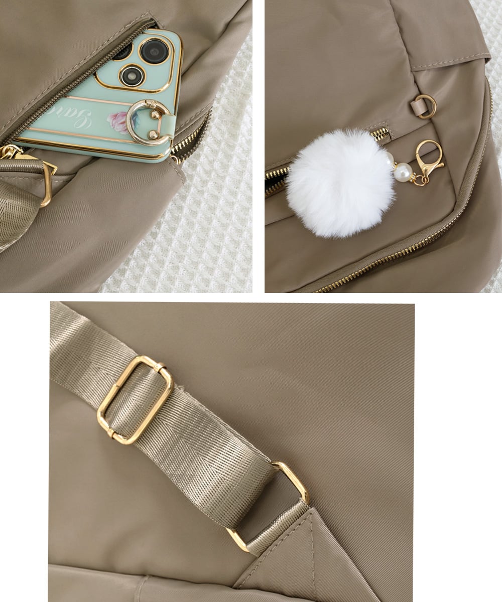 取り外し可能なファーチャームで、気分やシーンに合わせたアレンジが可能。