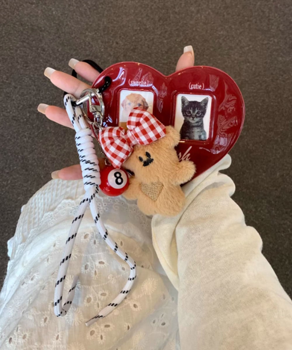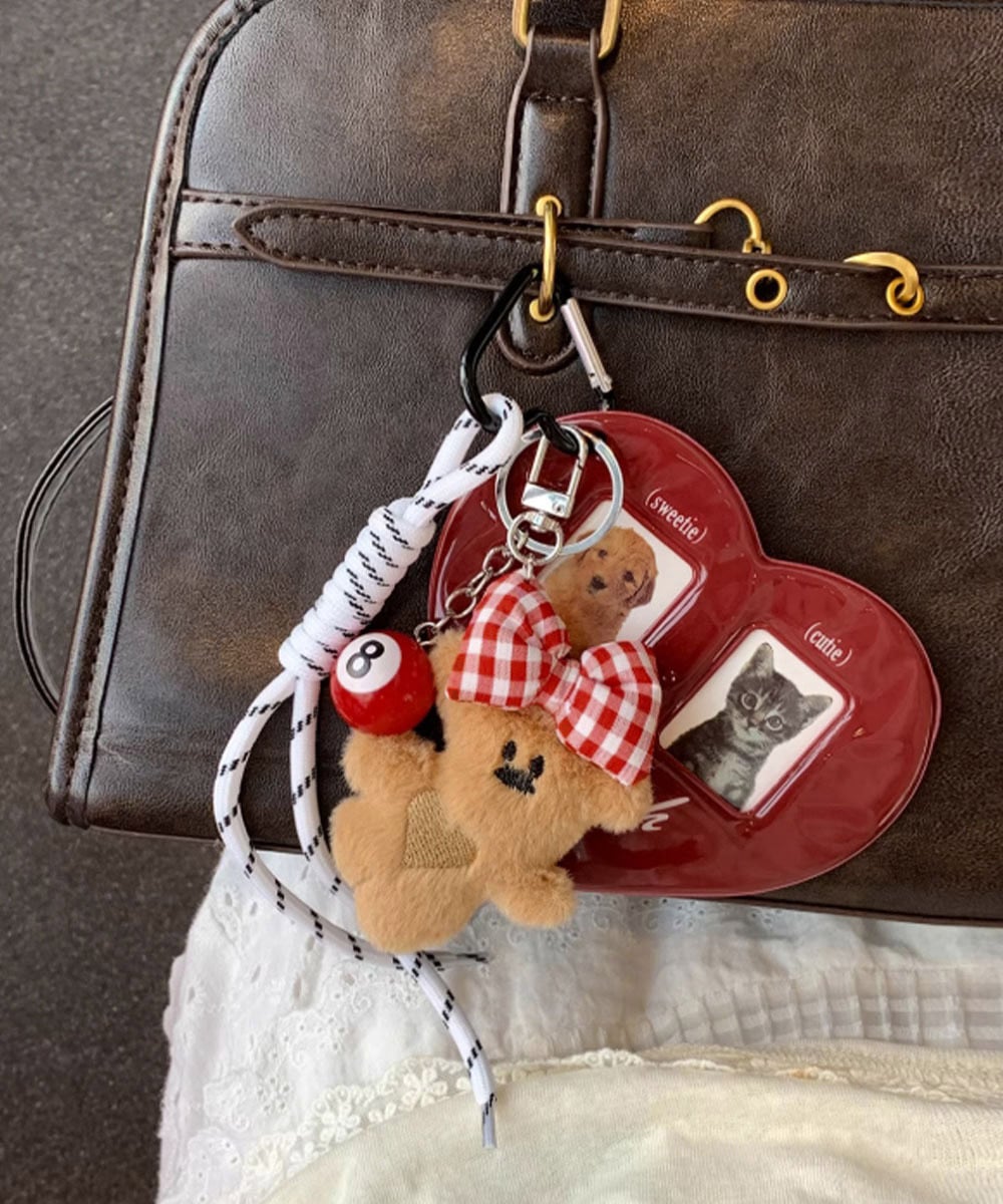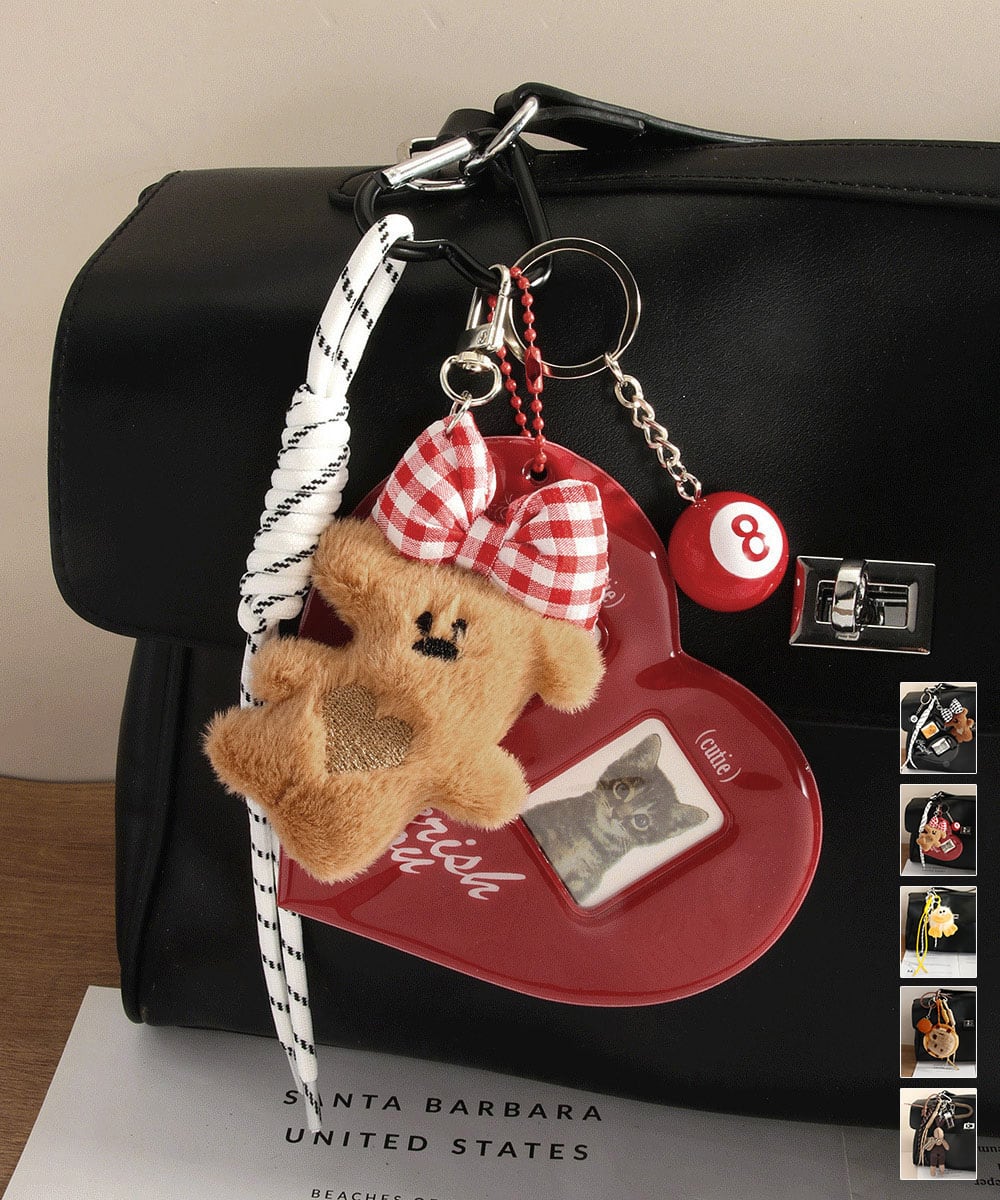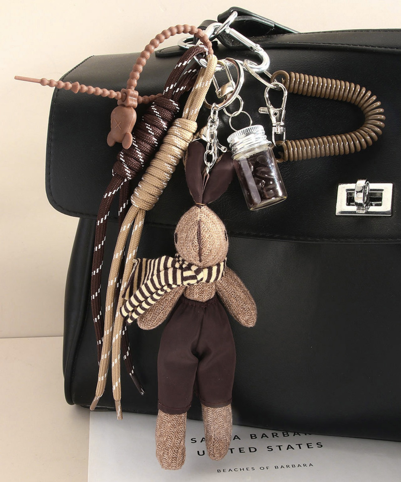 ぬいぐるみの愛らしさとヴィンテージ風デザインが融合した、プレゼントにも最適なバッグチャーム。