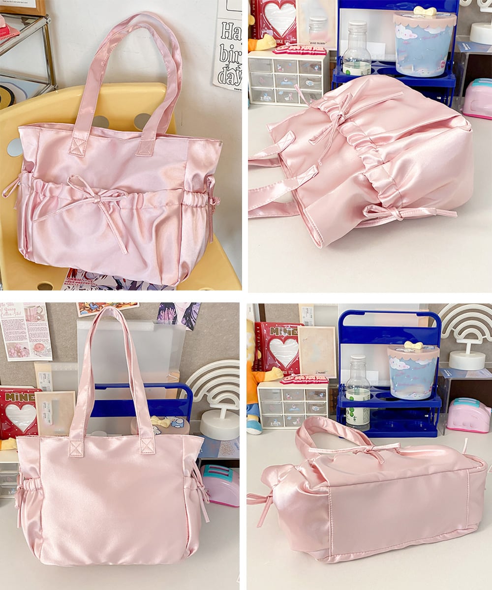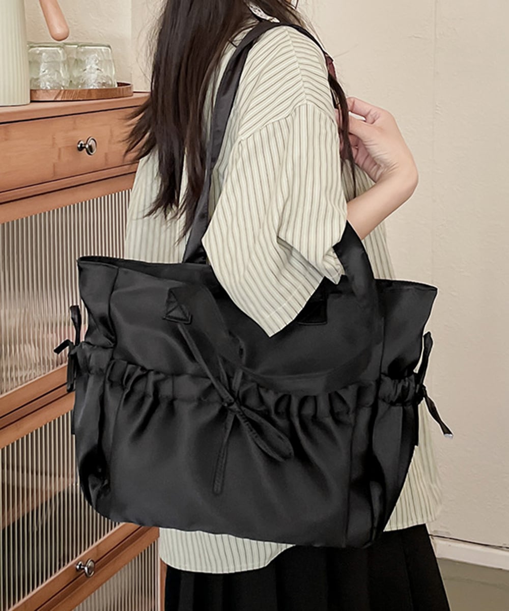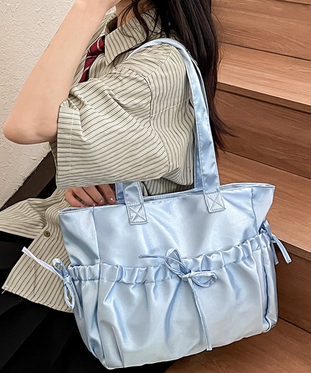 フリルギャザートート 2way 軽量 肩掛けカバン 大人可愛い ギャザーバッグ 柔らかい 韓国風 リボンbag 通勤通学
